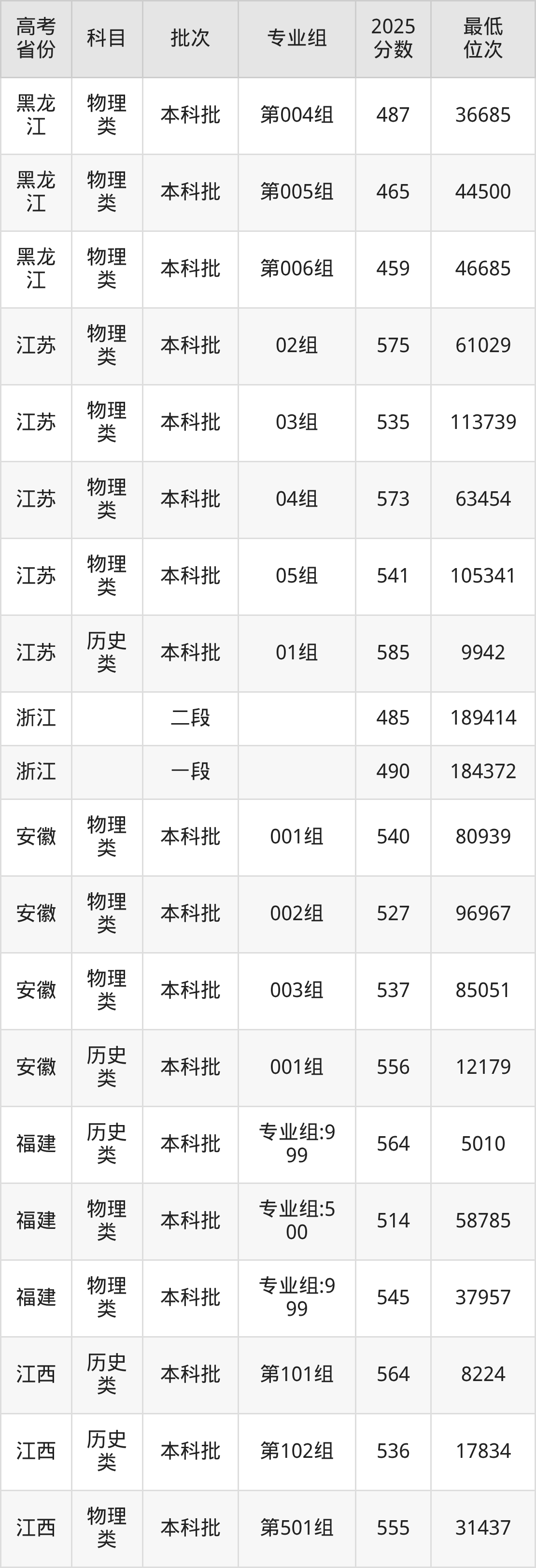 | 1060 0 | 物理 类 | 153组 | 142 | 医学信息工程 | 5513 |