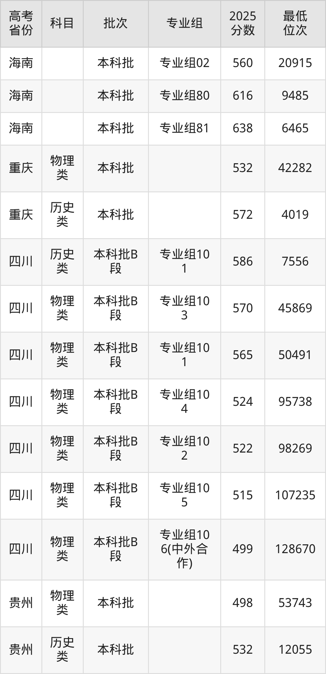 | 学校 代码 | 科目 | 2025年 专业组 | 专业 代码 | 2025年 专业名称 | 收费 标准 |