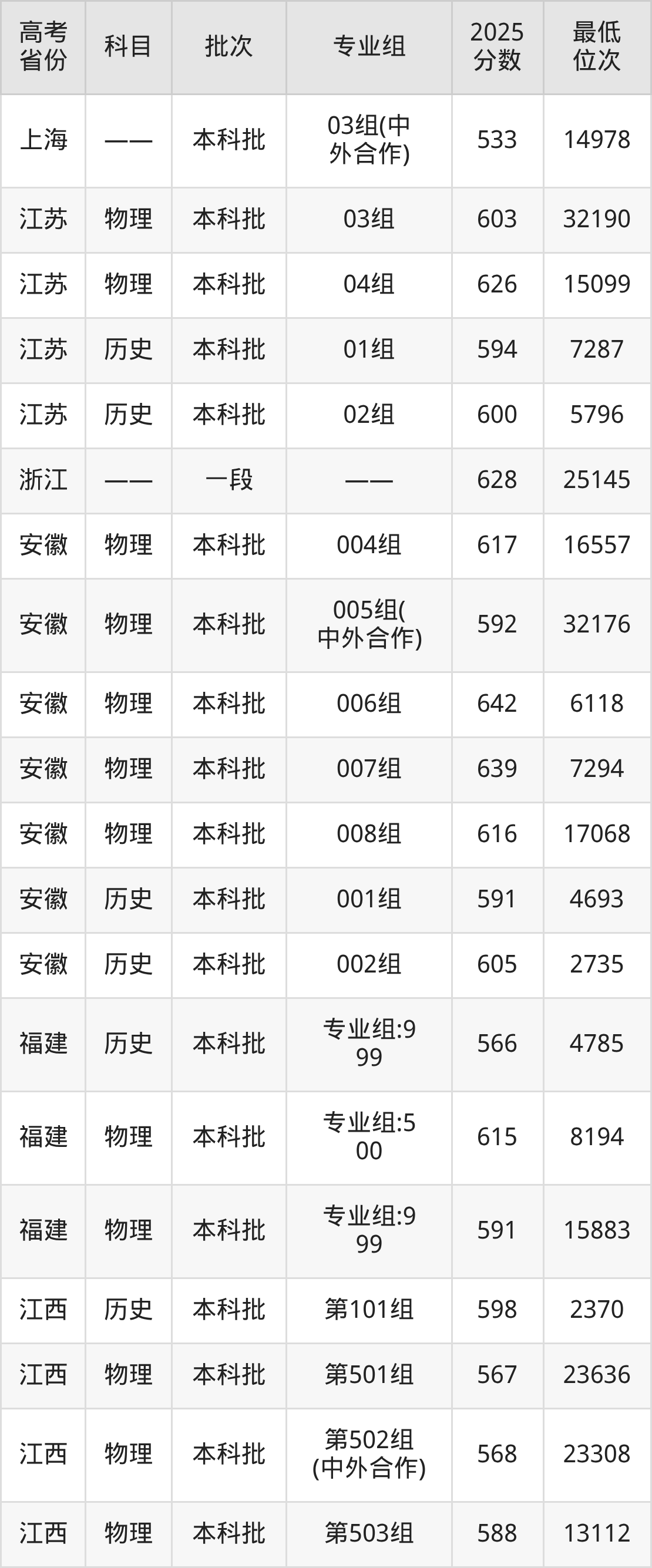 2026届高考生请重点参考下表,若你的高考成绩超过了合肥工业大学往年在你省的最低录取分及位次,那么2026年被录取的概率也会比较高: