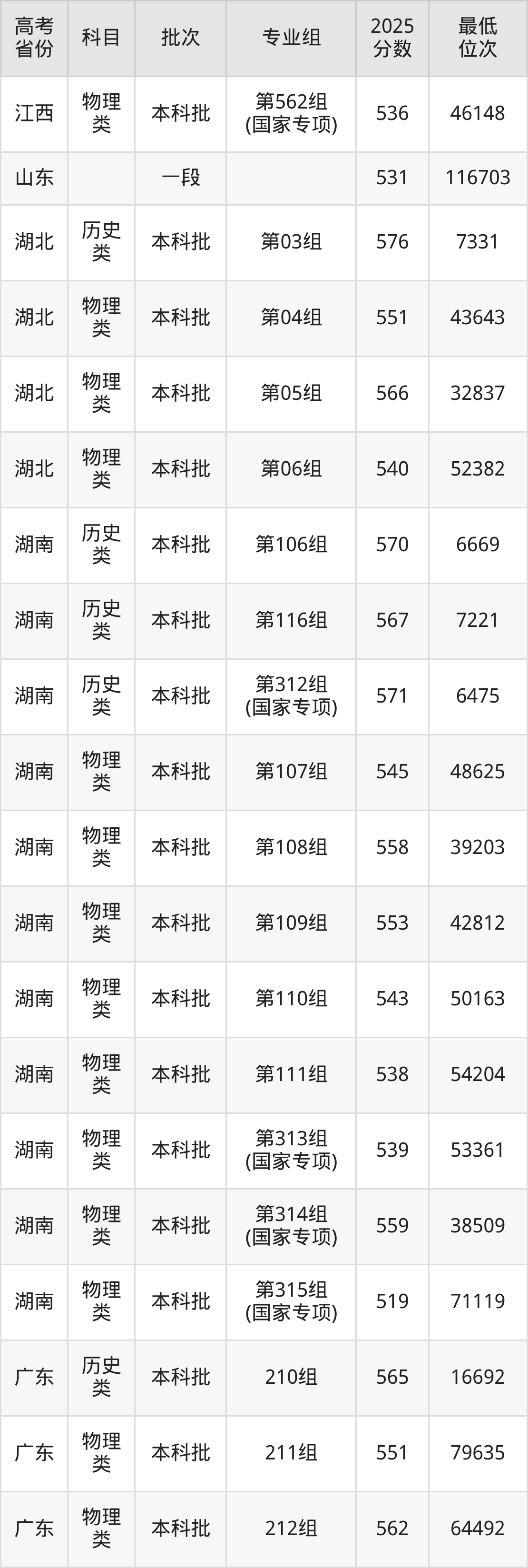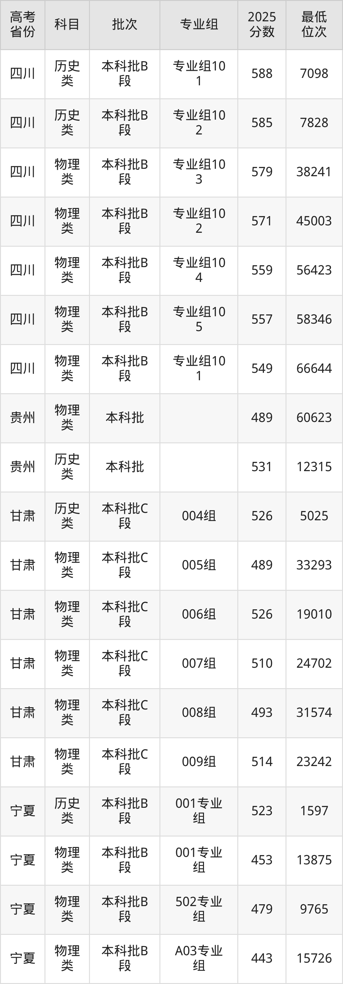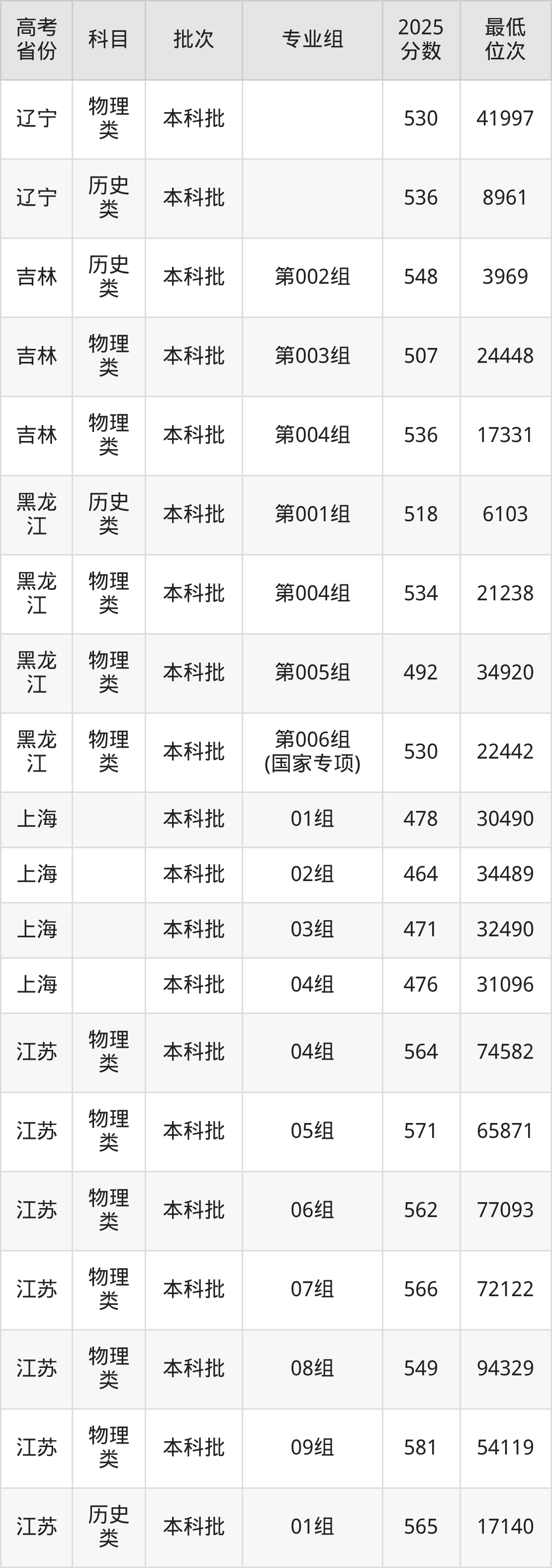 | 1111 | 物理 类 | 专业组: 500 | 059 | 机械电子工程 | 5460 |