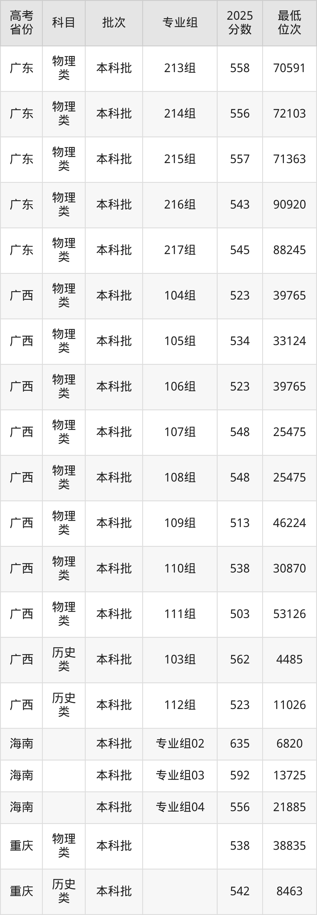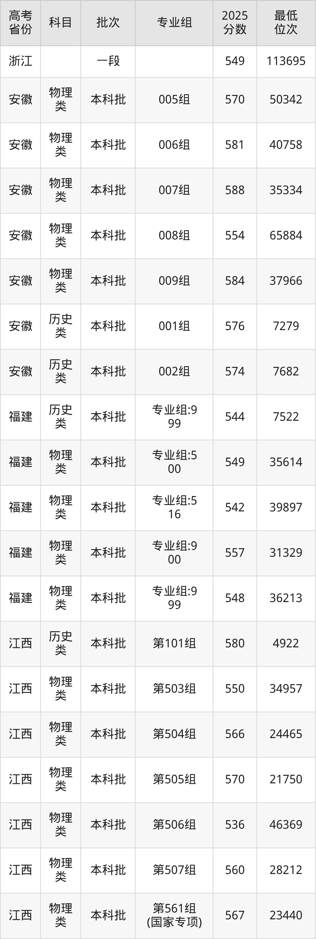 | 1111 | 物理 类 | 专业组: 999 | 038 | 经济学 | 5460 |