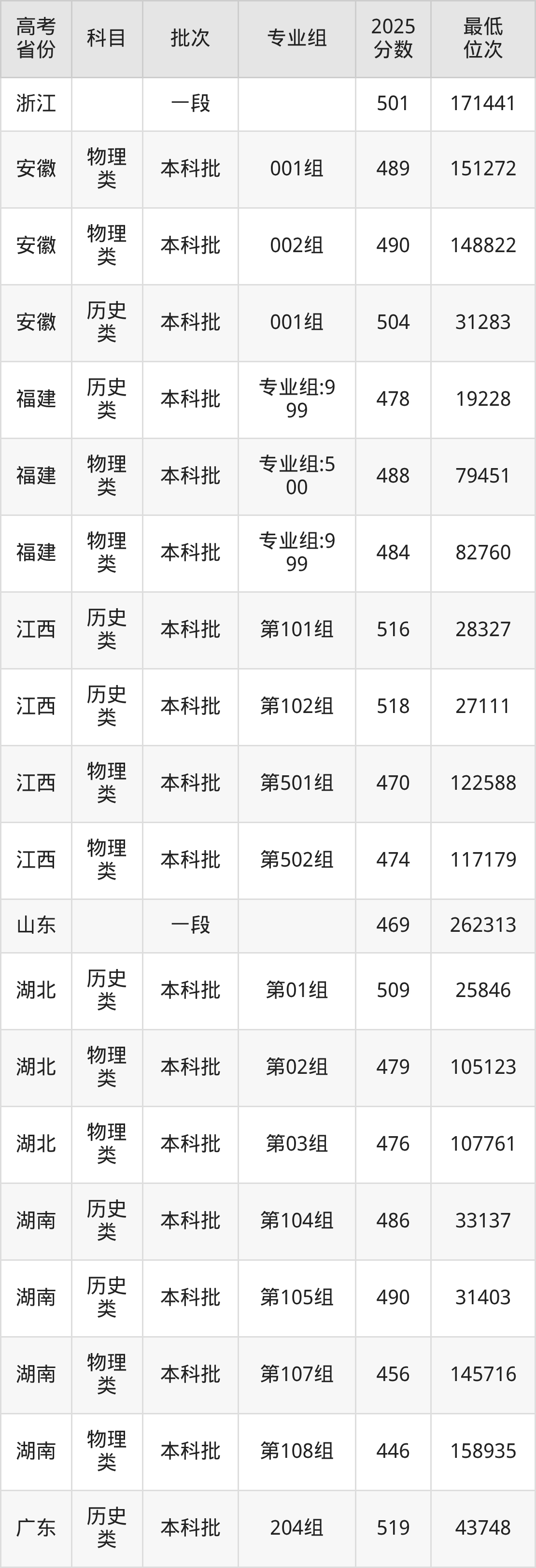 | 学校 代码 | 科目 | 2025年 专业组 | 专业 代码 | 2025年 专业名称 | 收费 标准 |