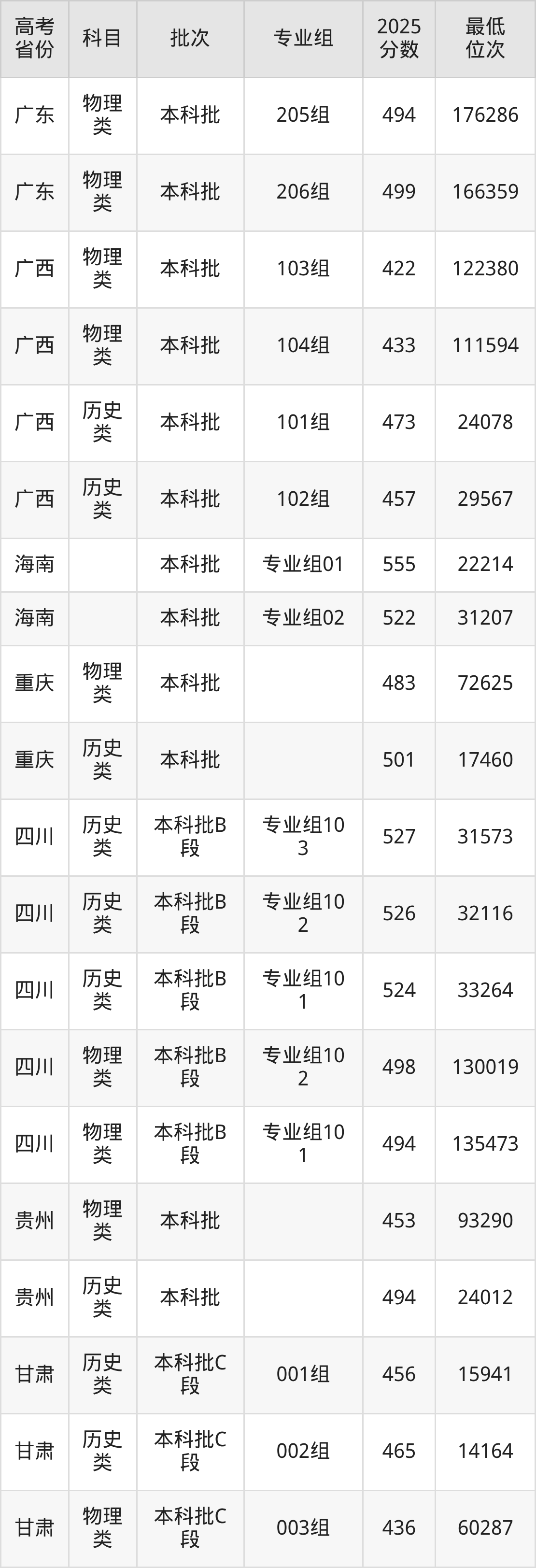 2026届高考生请重点参考下表,若你的高考成绩超过了红河学院往年在你省的最低录取分及位次,那么2026年被录取的概率也会比较高: