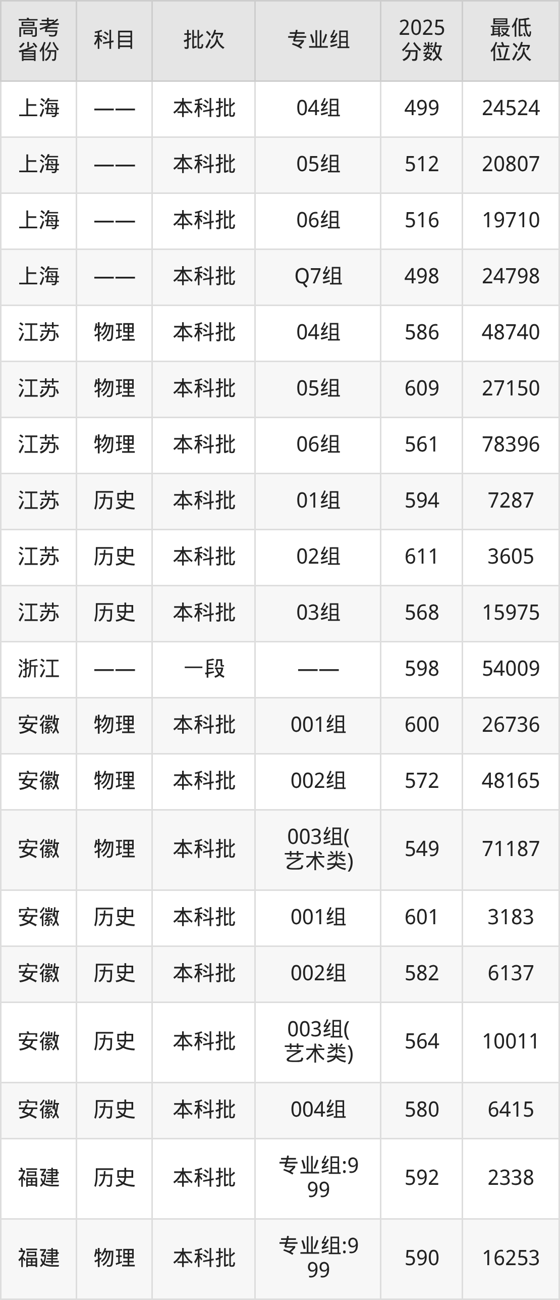 2026届高考生请重点参考下表,若你的高考成绩超过了上海政法学院往年在你省的最低录取分及位次,那么2026年被录取的概率也会比较高: