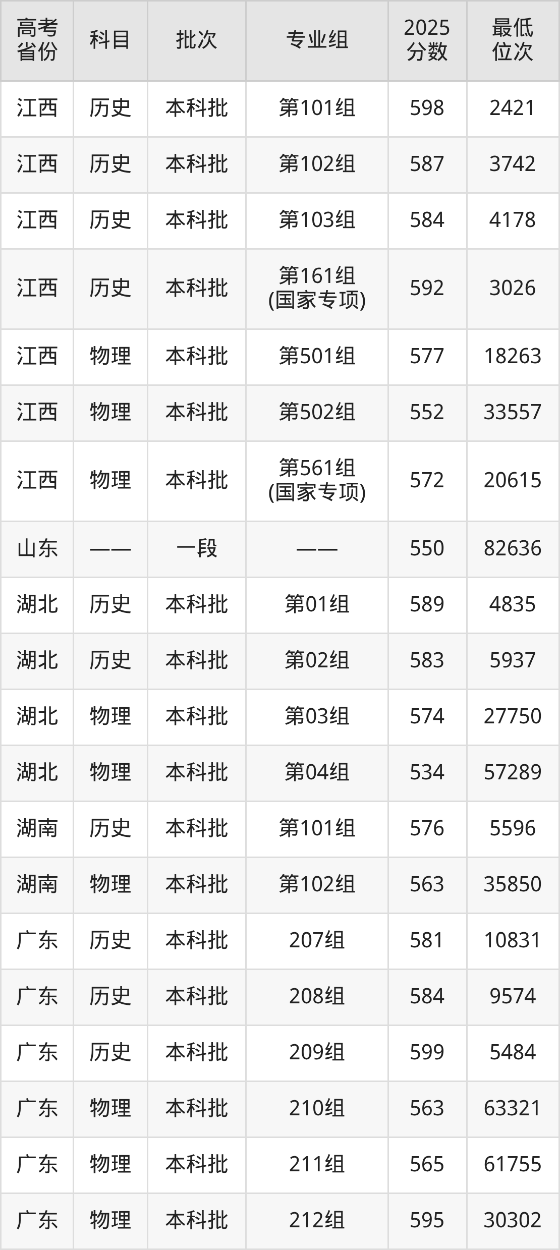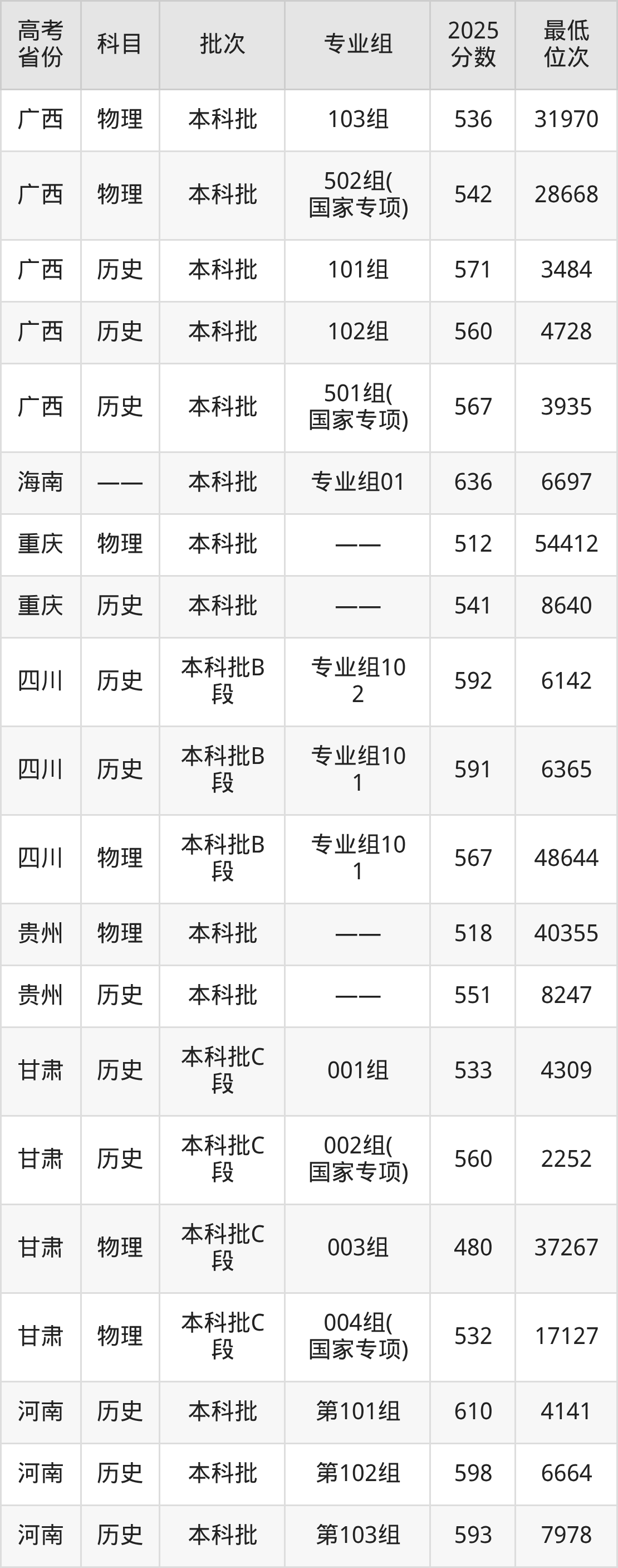 | 学校 代码 | 2025年 专业组 | 专业 代码 | 2025年 专业名称 | 收费 标准 |