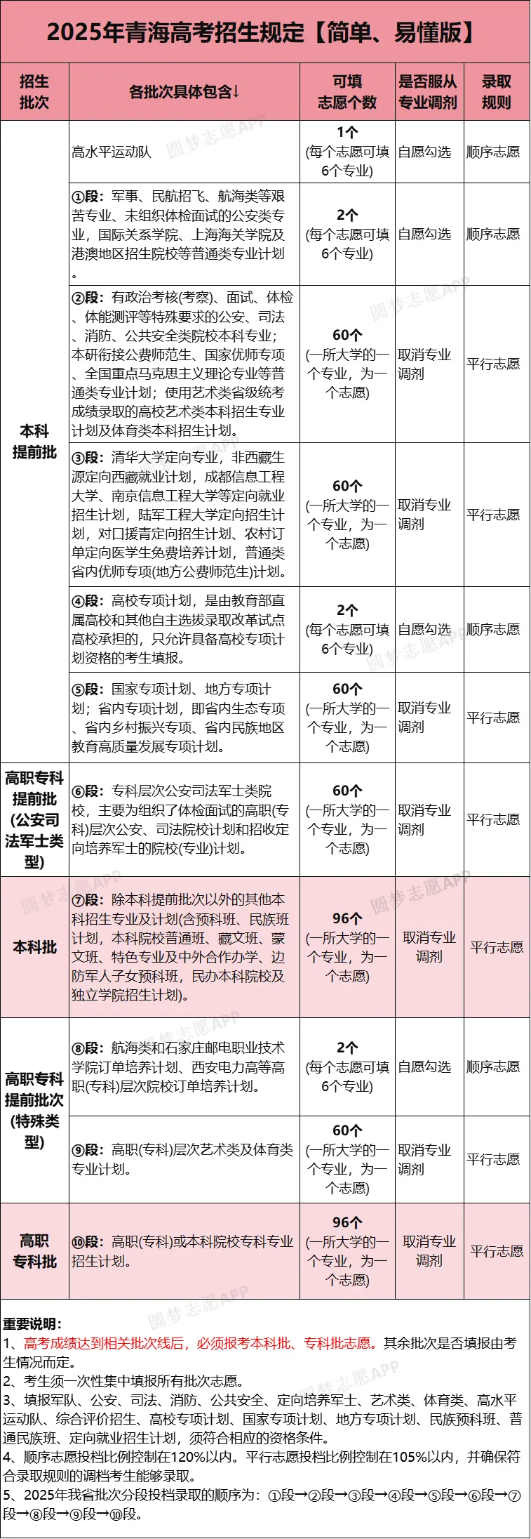 2026年青海高考志愿根据录取批次和招生类型进行设置,主要分为本科提前批、本科批和高职专科批,均以平行志愿为主,核心特点是“专业(类)+学校”且无调剂。
