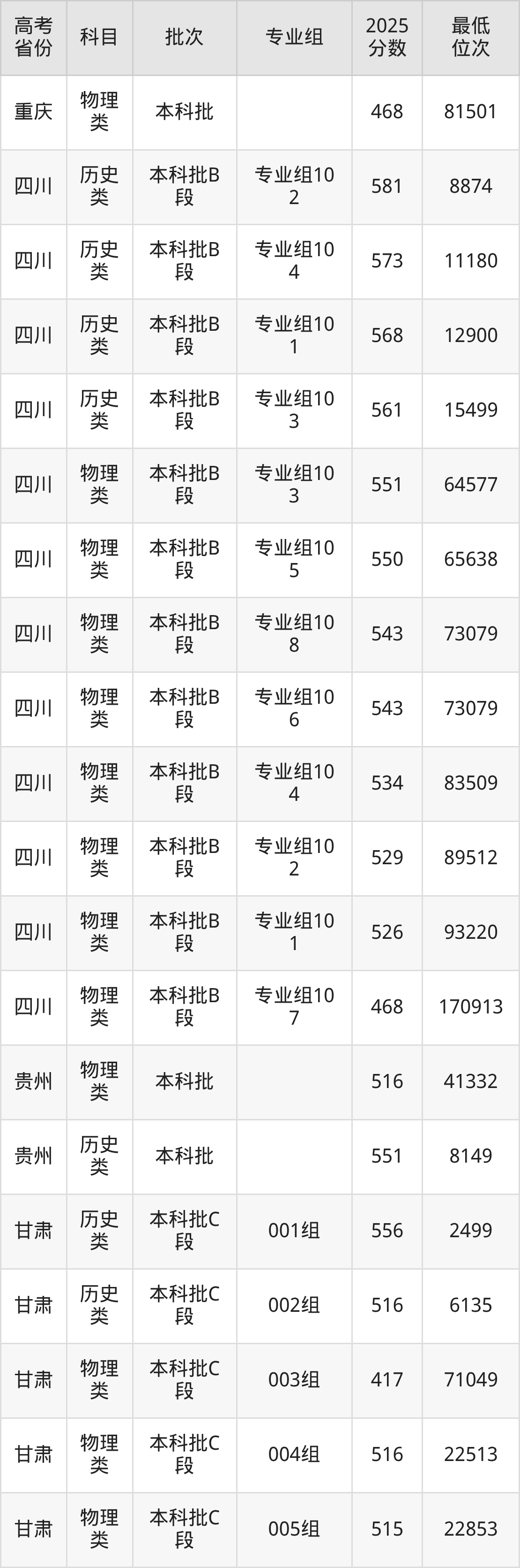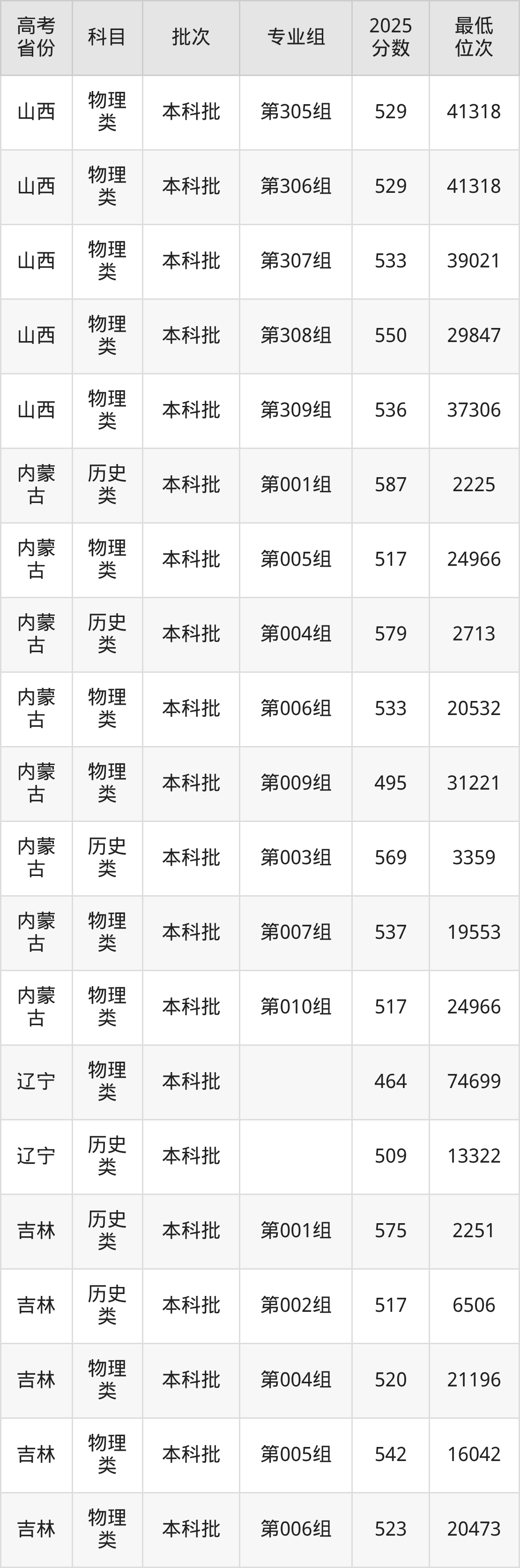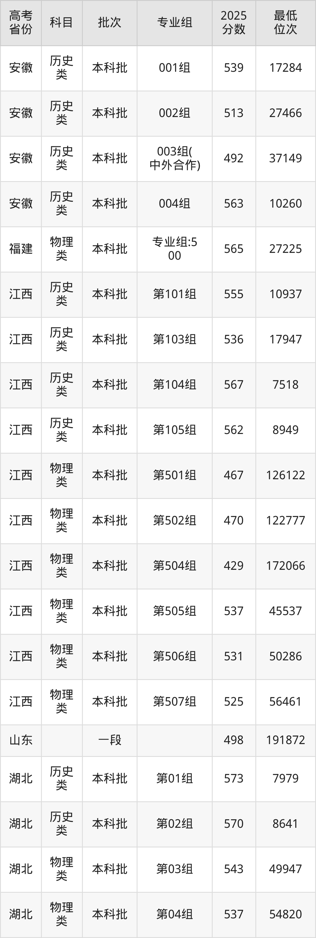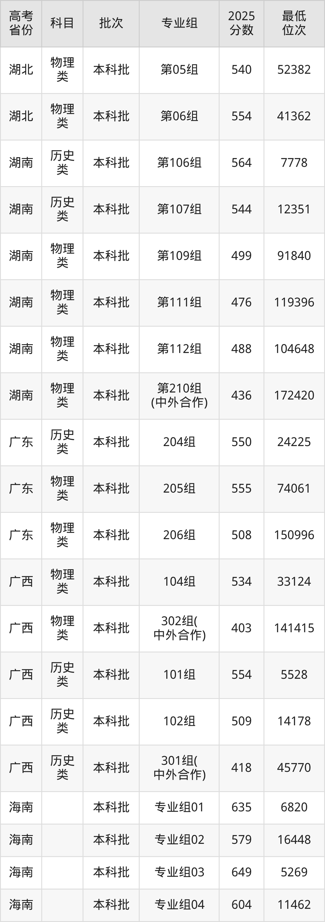 | 学校 代码 | 科目 | 专业 代码 | 2025年 专业名称 | 收费 标准 |