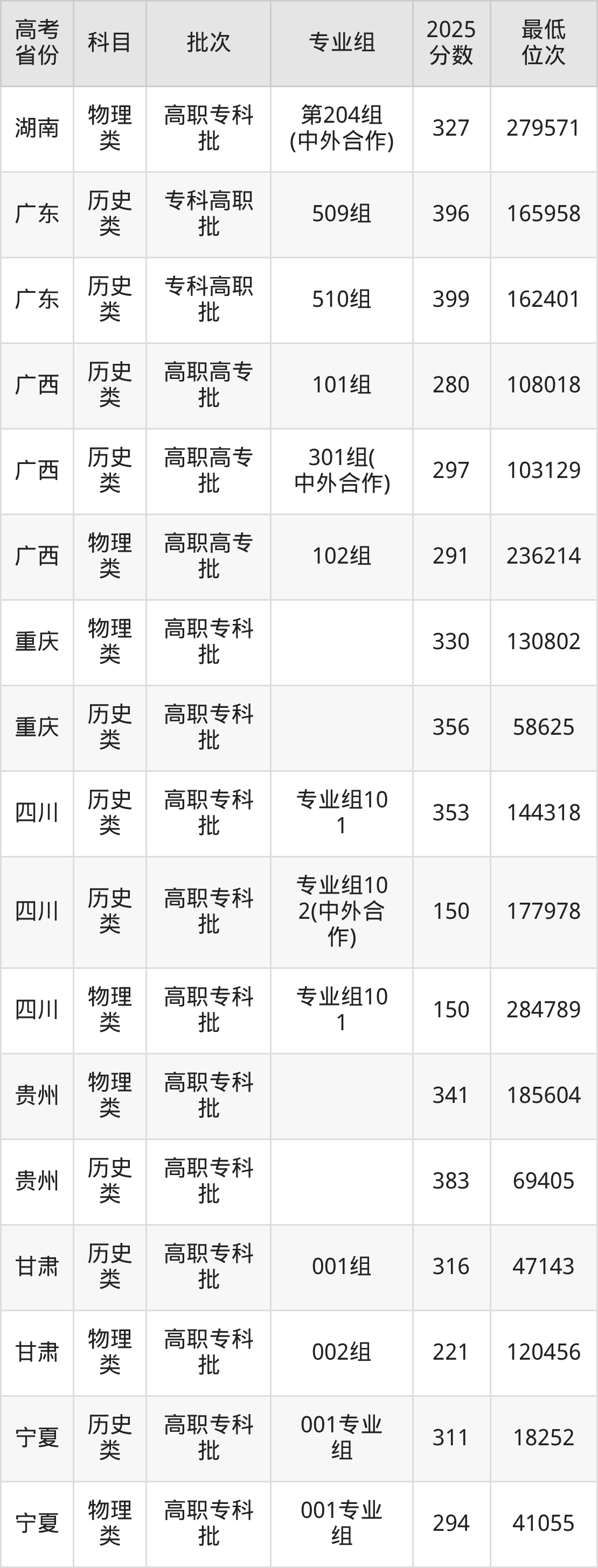| 学校 代码 | 科目 | 2025年 专业组 | 专业 代码 | 2025年 专业名称 | 收费 标准 |