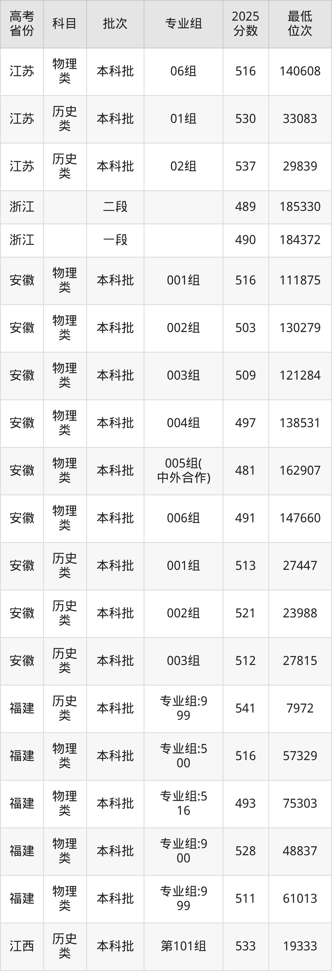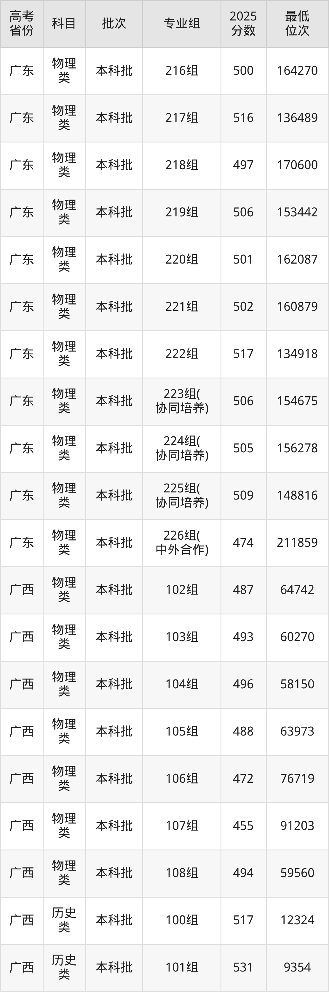 | 1057 9 | 物理 类 | 216组 | 076 | 工商管理 | 5050 |