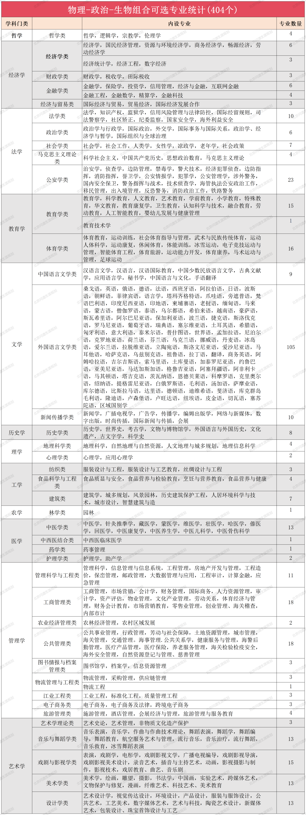4.物理+生物+政治:该组合覆盖了理工科、文科以及部分医学农学专业。