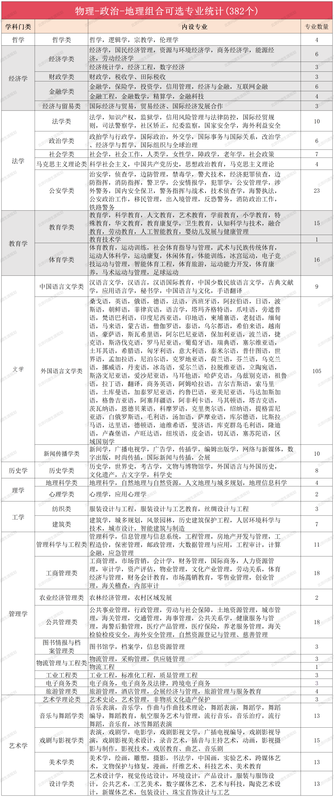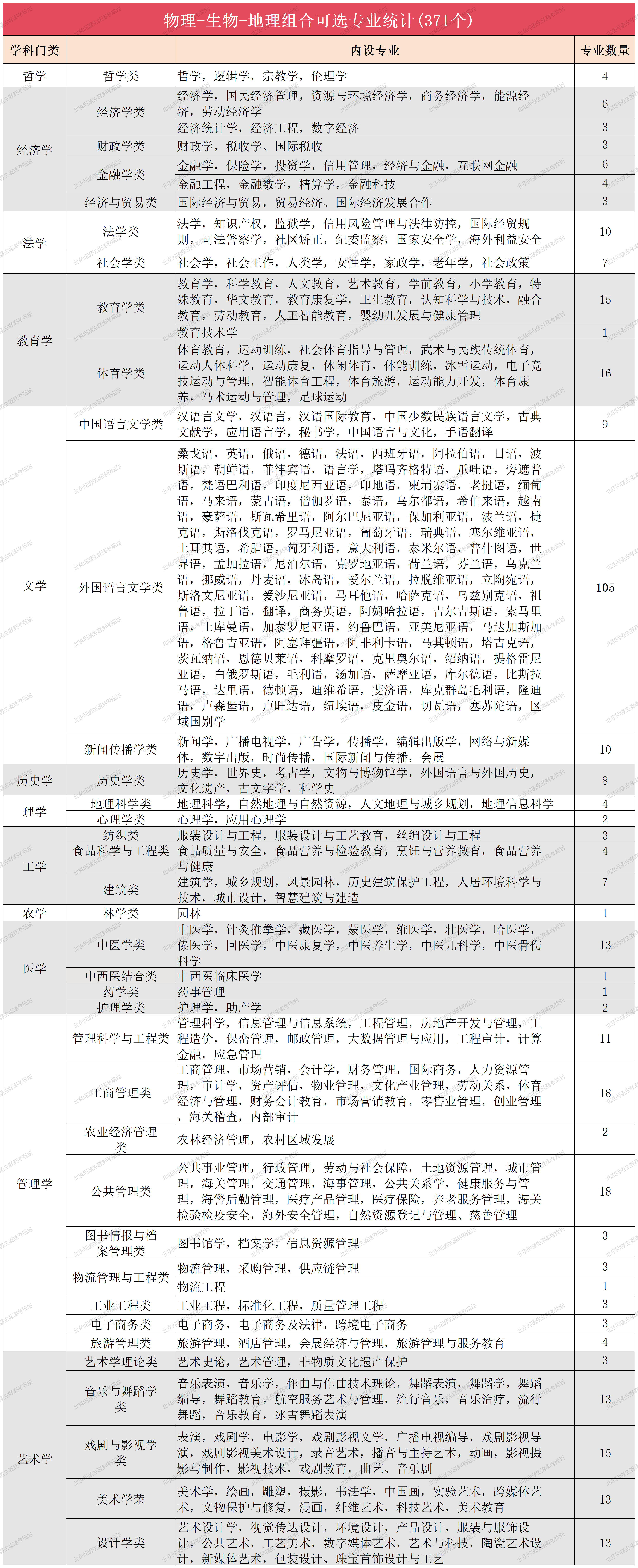 适合体育类、旅游管理、护理等专业。需要注意,该组合竞争力较大,需确保地理、生物成绩突出。