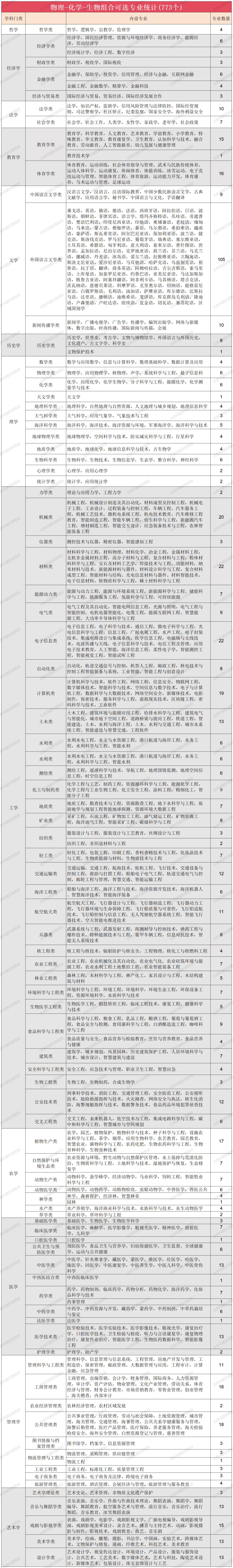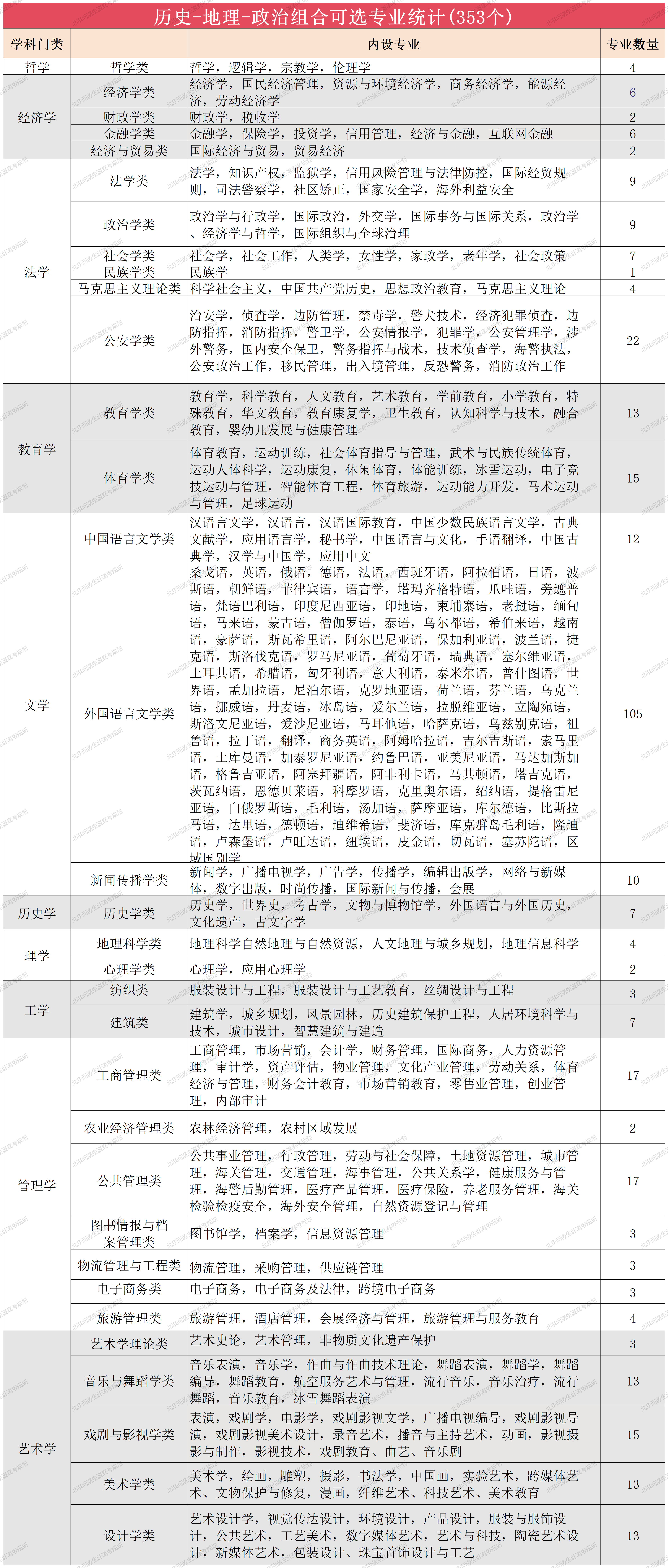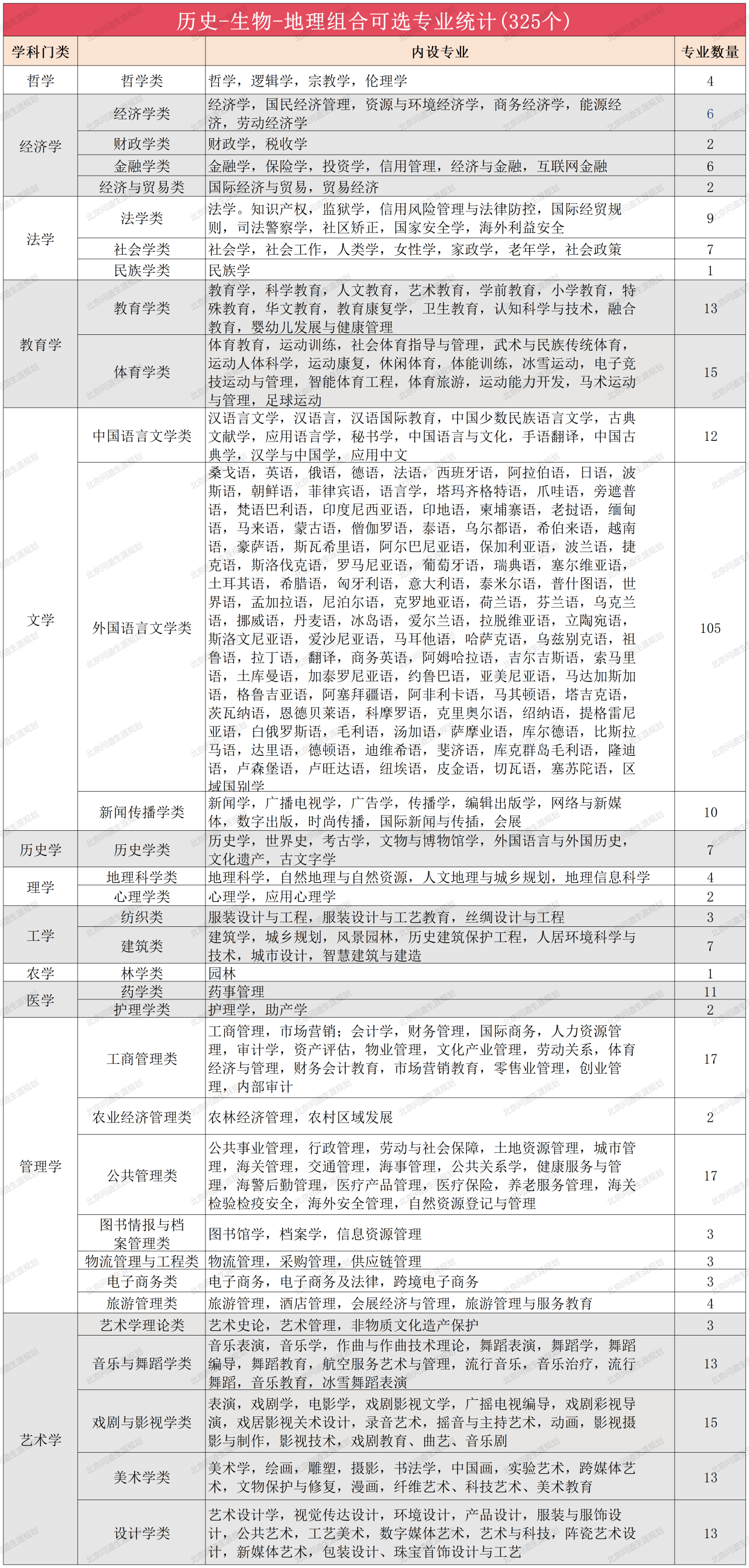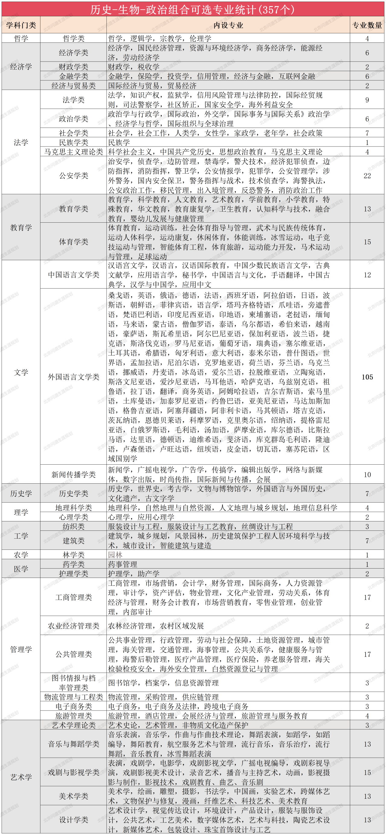 覆盖如历史学、化学、生物科学、药学、医学技术类、中医学等专业。但相比“物化生”组合,在部分高校的理工科热门专业选择上受限。