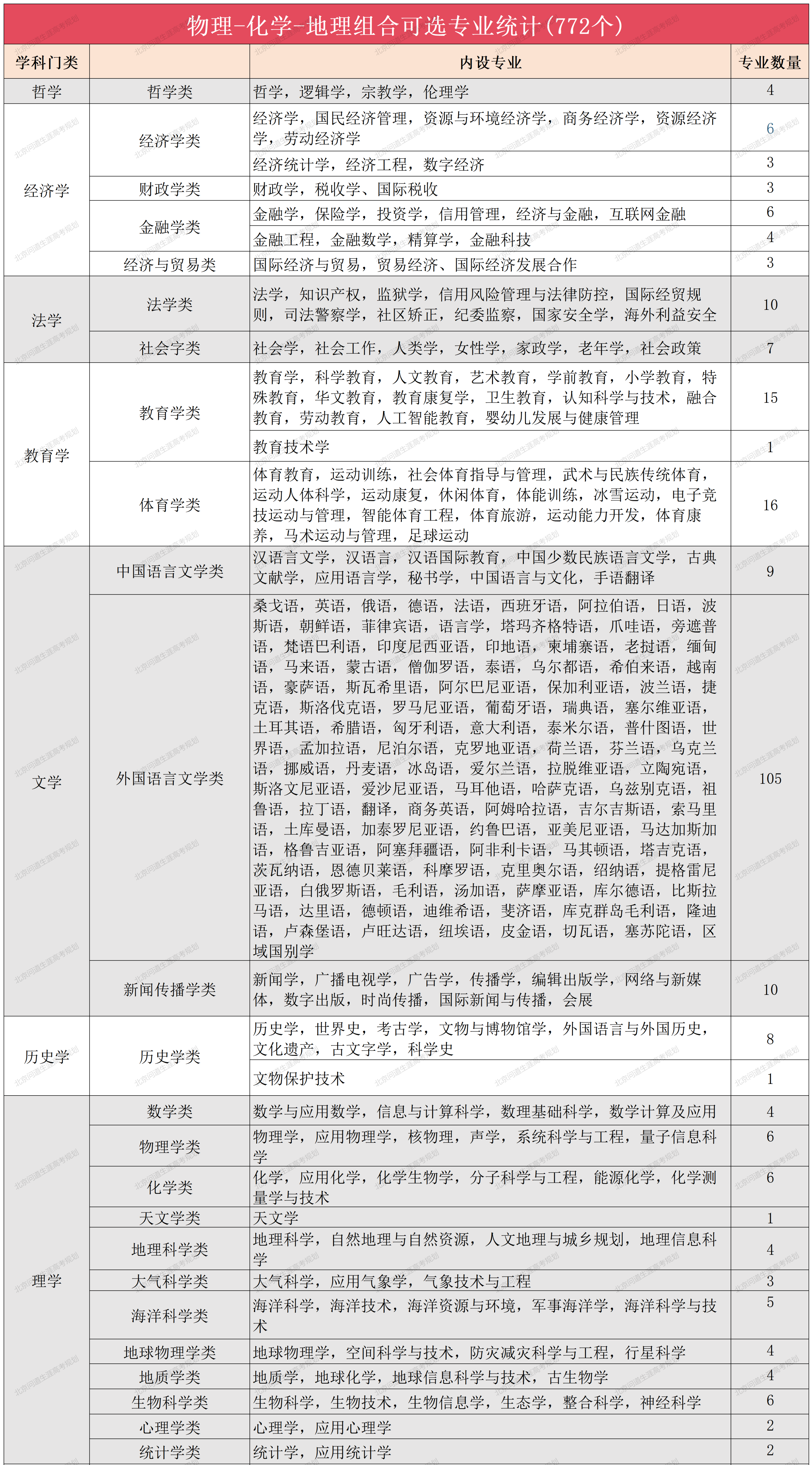 适配地理科学、环境规划等偏理专业。适合物理较弱但化学、地理成绩优异的“跨界选手”。