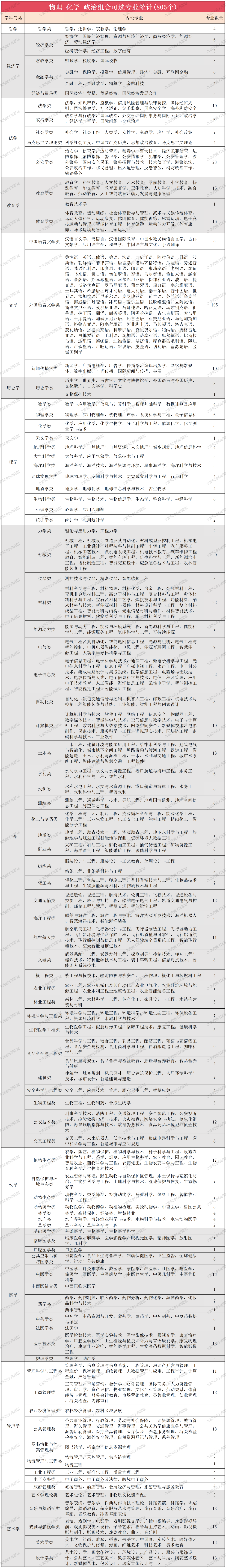 1.物理+化学+政治:这是覆盖专业最广的组合之一,可报专业比例超过98.9%。