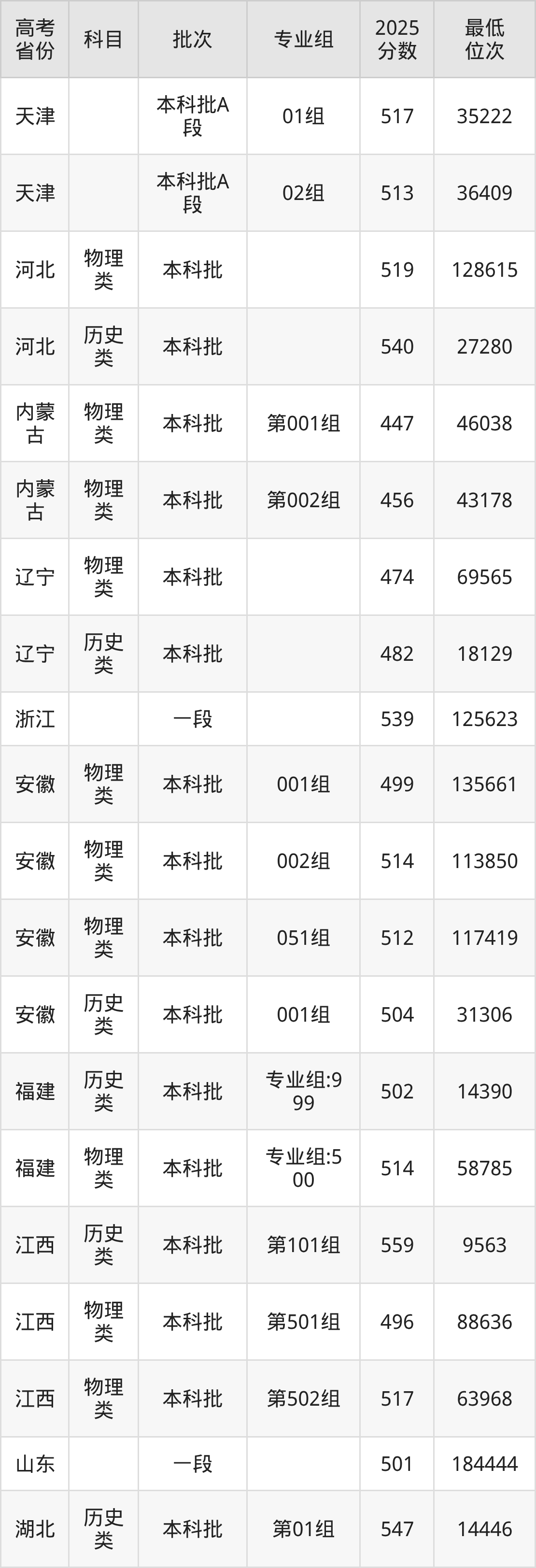 | 1057 7 | 物理 类 | 240组 | 050 | 物流管理 | 5050 |