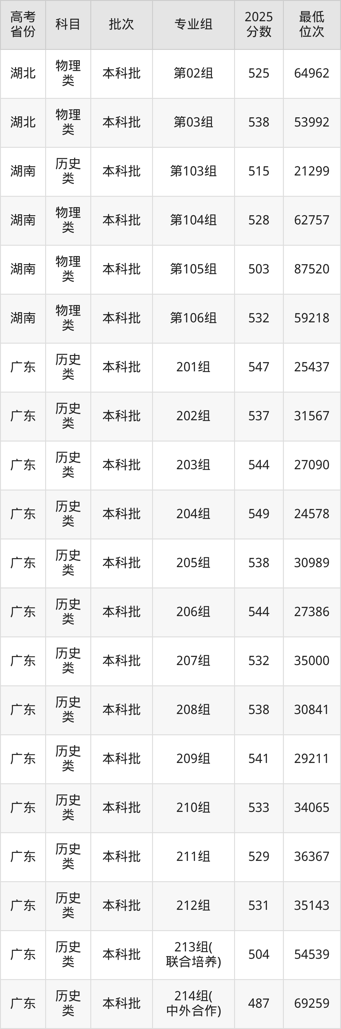 2026届高考生请重点参考下表,若你的高考成绩超过了惠州学院往年在你省的最低录取分及位次,那么2026年被录取的概率也会比较高: