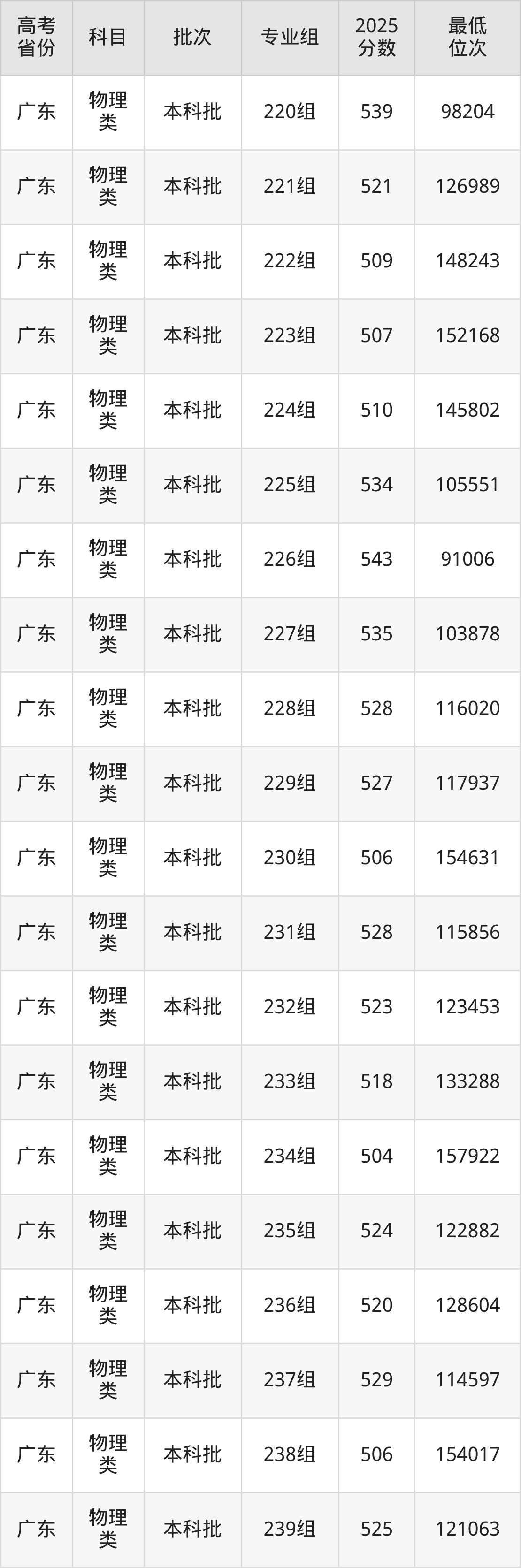 | 1057 7 | 物理 类 | 239组 | 044 | 法学 | 5050 |