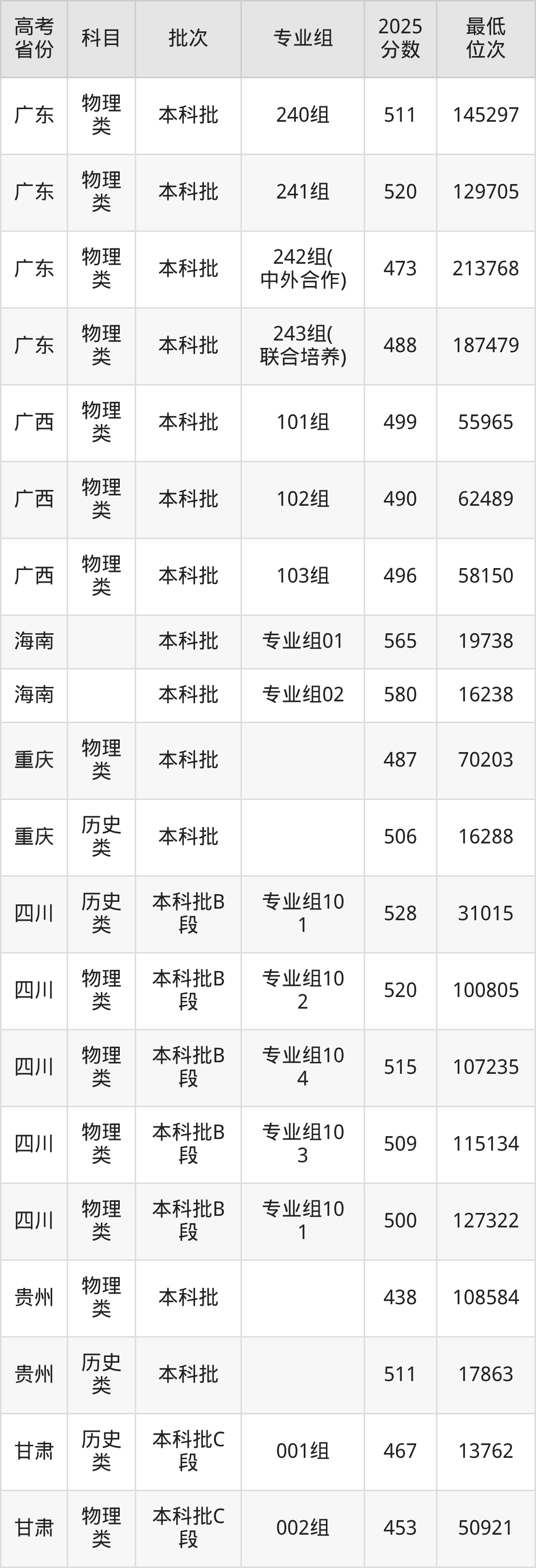 | 1057 7 | 物理 类 | 243组 (联合培 养) | 112 | 财务管理 | 5050 |
