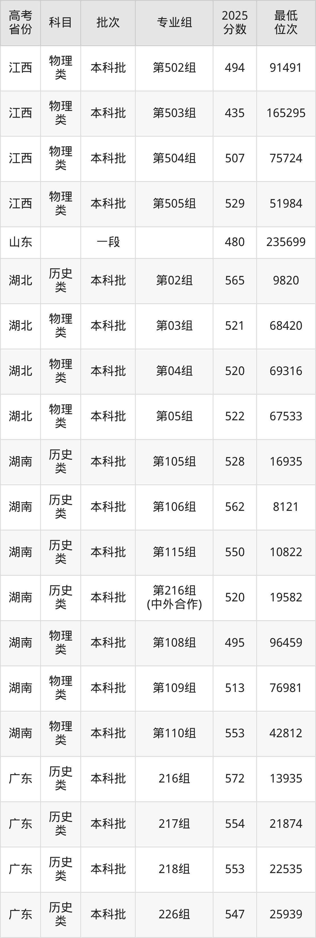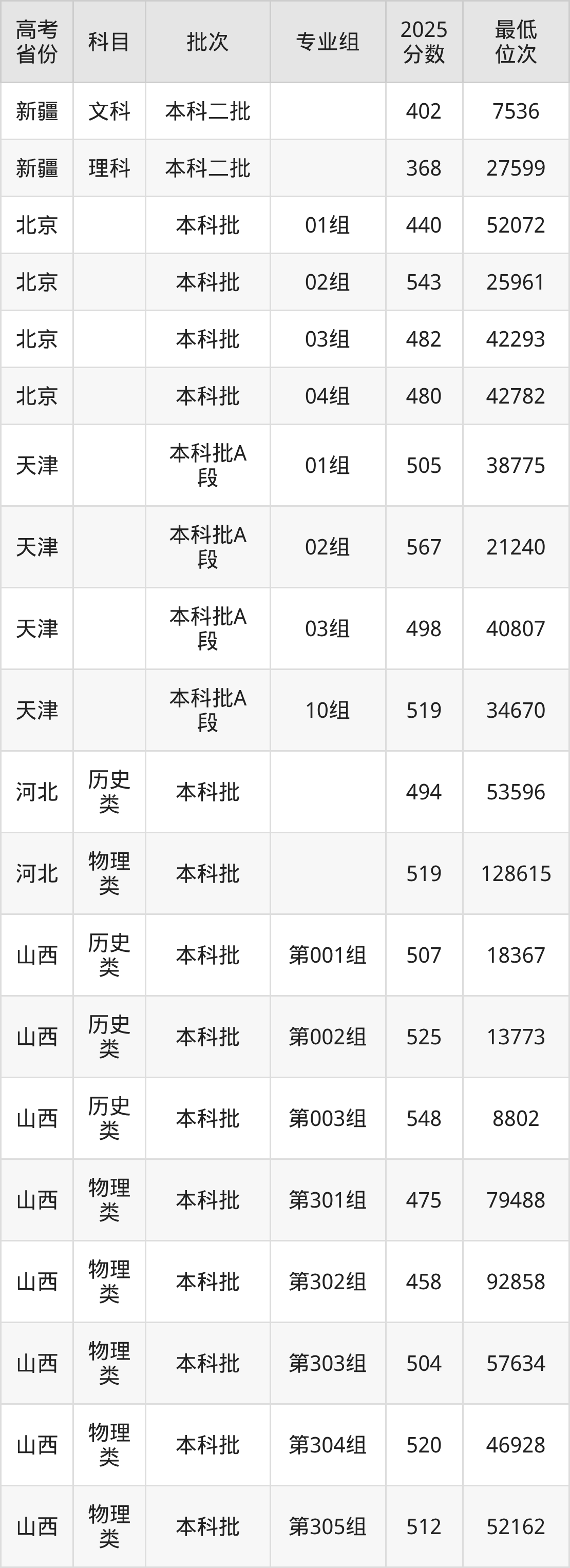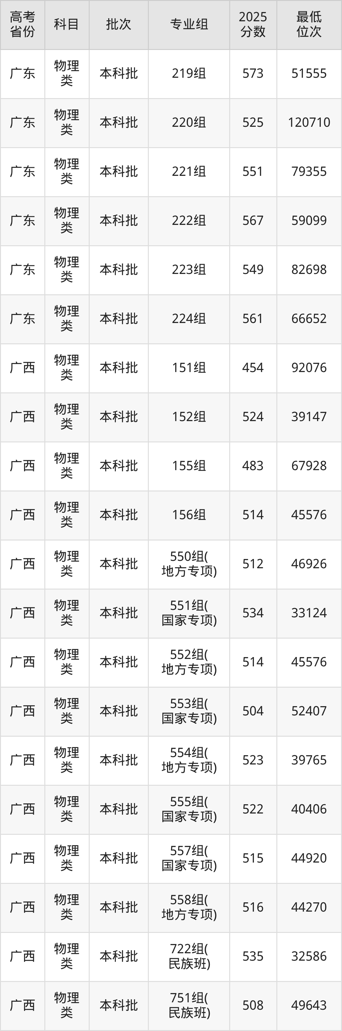| 1060 2 | 物理 类 | 752组 (民族班) | 298 | 法学 | 6000 |