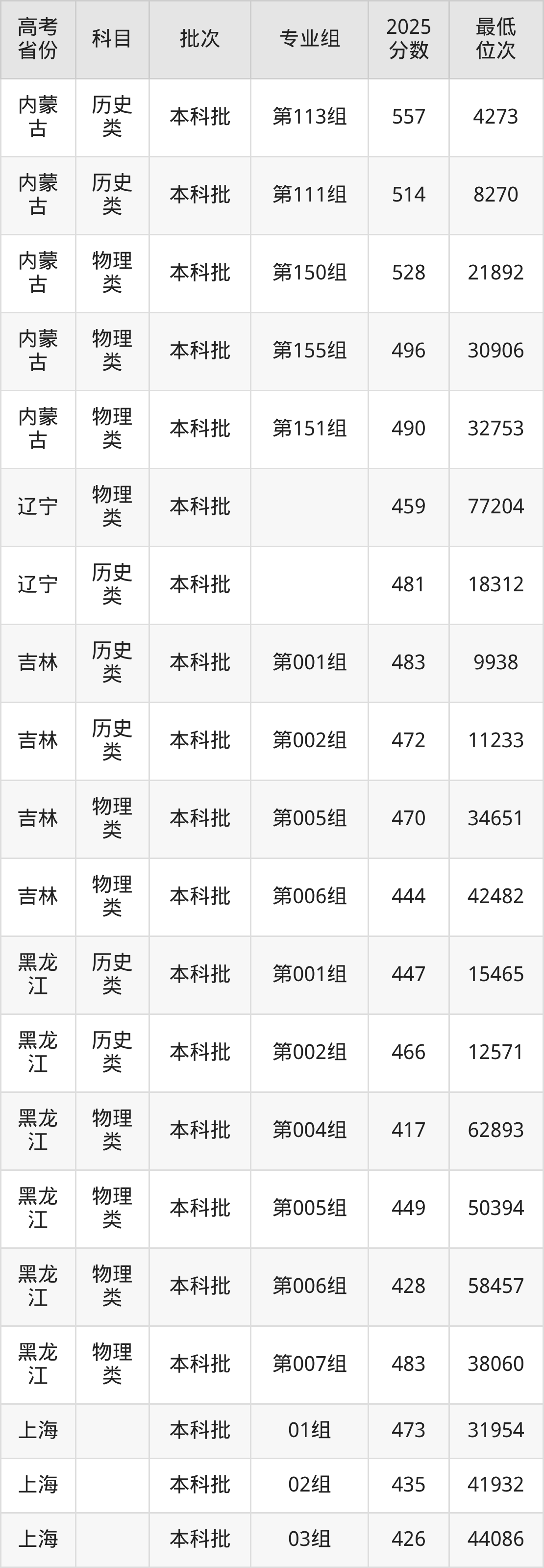 | 1060 2 | 物理 类 | 151组 | 208 | 劳动与社会保 障 | 5500 |