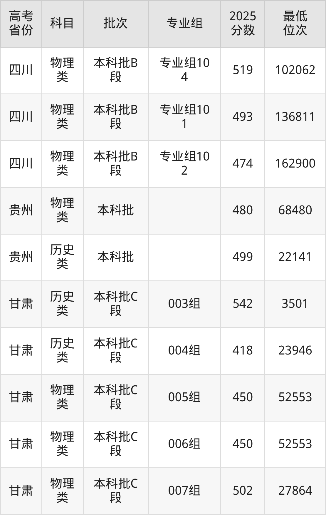 | 1060 2 | 物理 类 | 751组 (民族班) | 291 | 生物科学 | 5500 |