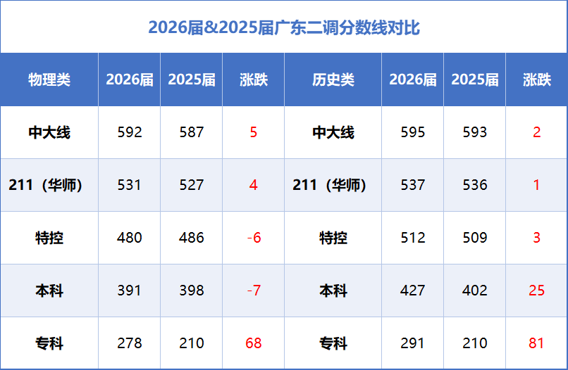 与2025届同期二调成绩相比,今年各段位分数线呈现结构性变化,传递出一些值得关注的备考信号: