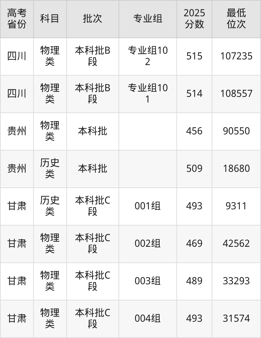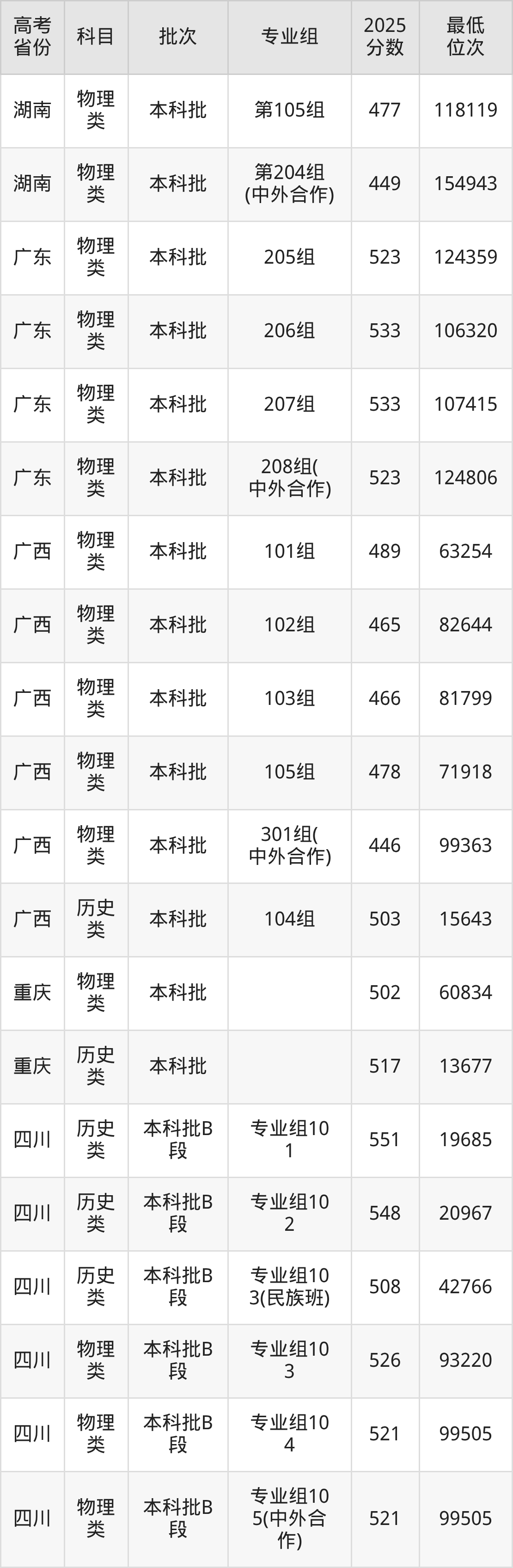 | 学校 代码 | 专业 代码 | 2025年 专业名称 | 收费 标准 |