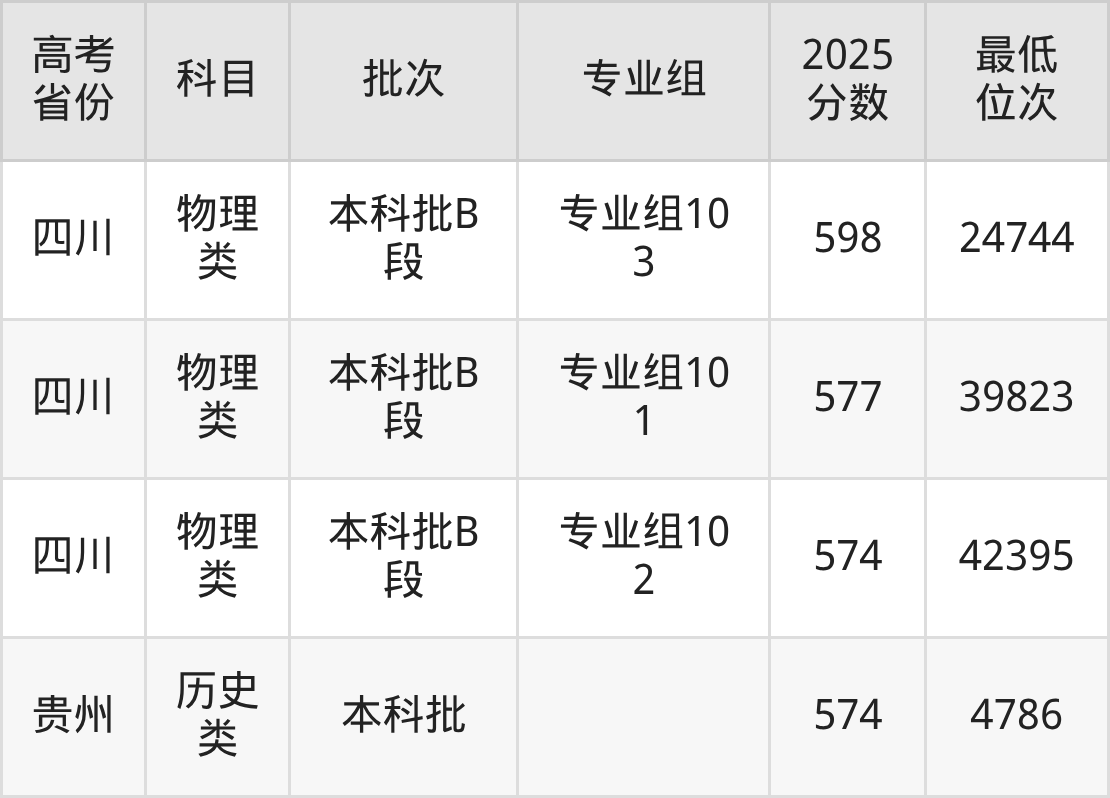 | 学校 代码 | 科目 | 2025年 专业组 | 专业 代码 | 2025年 专业名称 | 收费 标准 |
