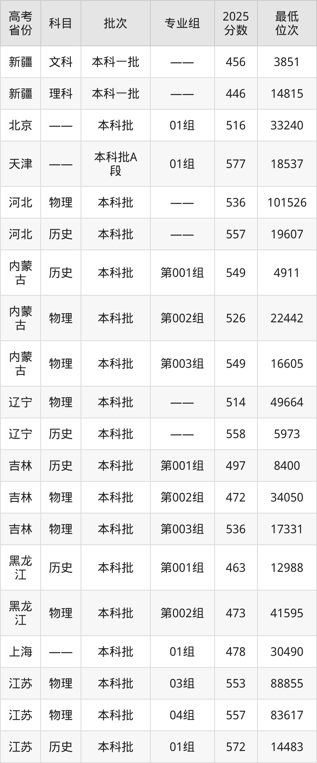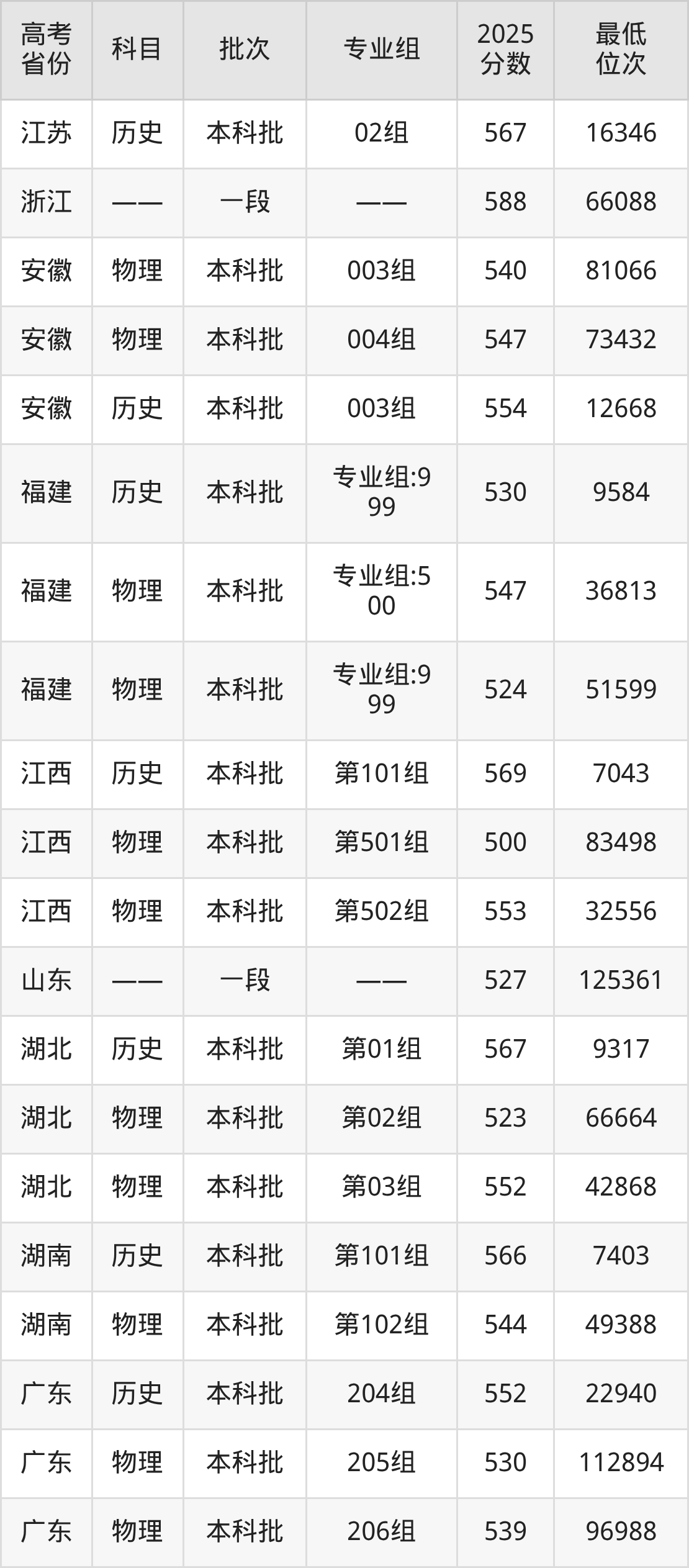 安徽财经大学2025年在全国各省的最低分是378分,在安徽物理类招生的最低分是540分、最低位次是81066位,在安徽历史类招生的最低分是554分、最低位次是12668位,在新疆文科招生的最低分是456分、最低位次是3851位。