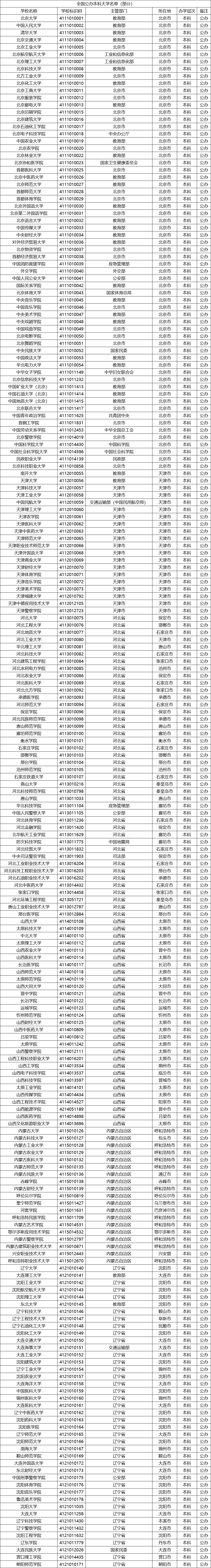 一、全国公办本科大学完整名单