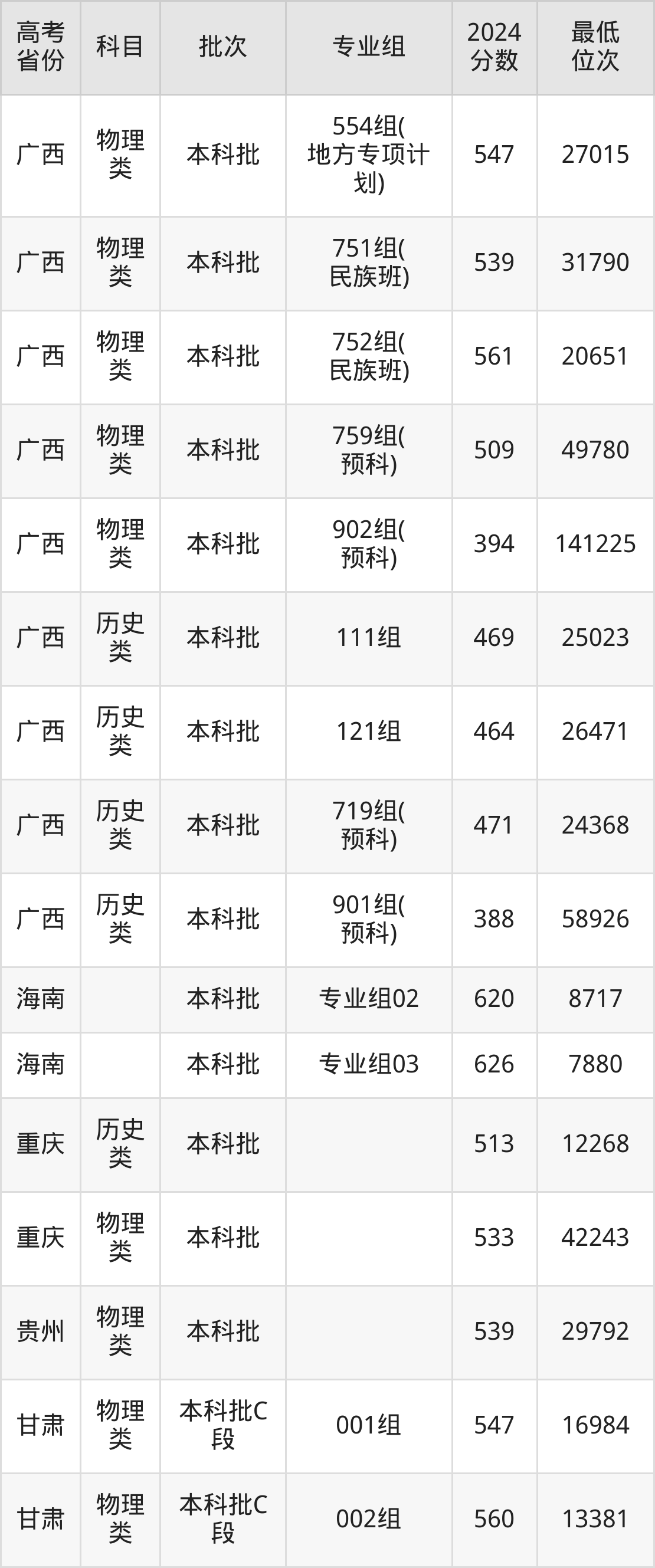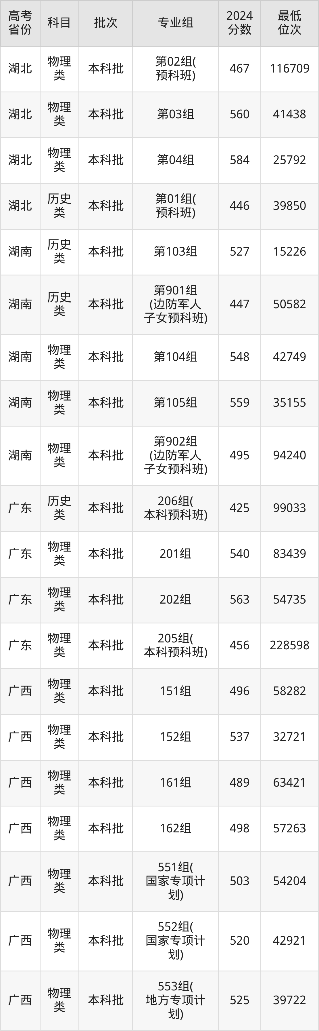 2025届高考生请重点参考下表,若你的高考成绩超过了桂林电子科技大学往年在你省的最低录取分及位次,那么2025年被录取的概率也会比较高: