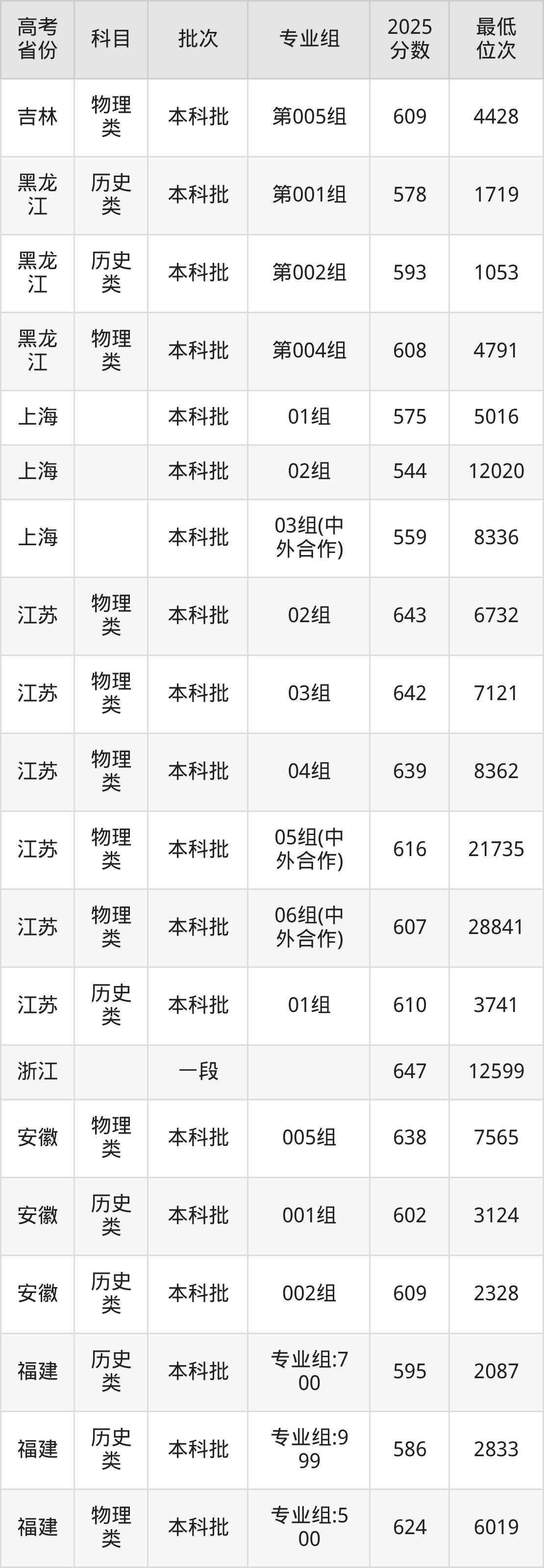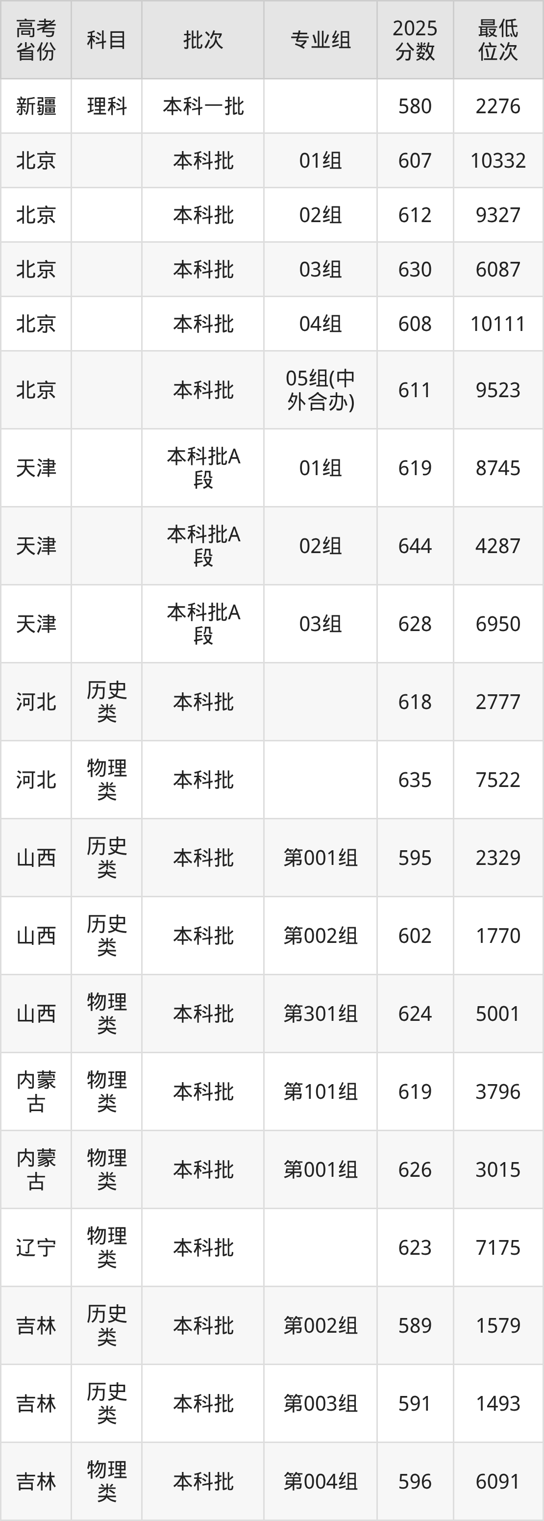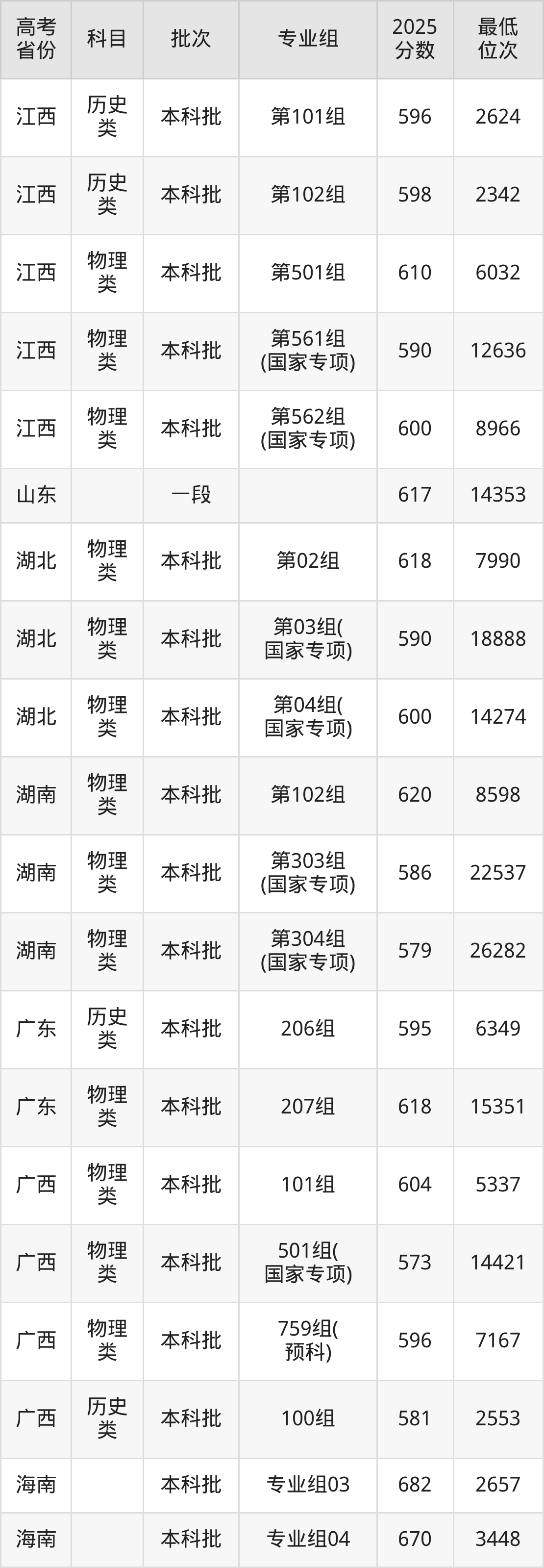 2026届高考生请重点参考下表,若你的高考成绩超过了南京理工大学往年在你省的最低录取分及位次,那么2026年被录取的概率也会比较高:
