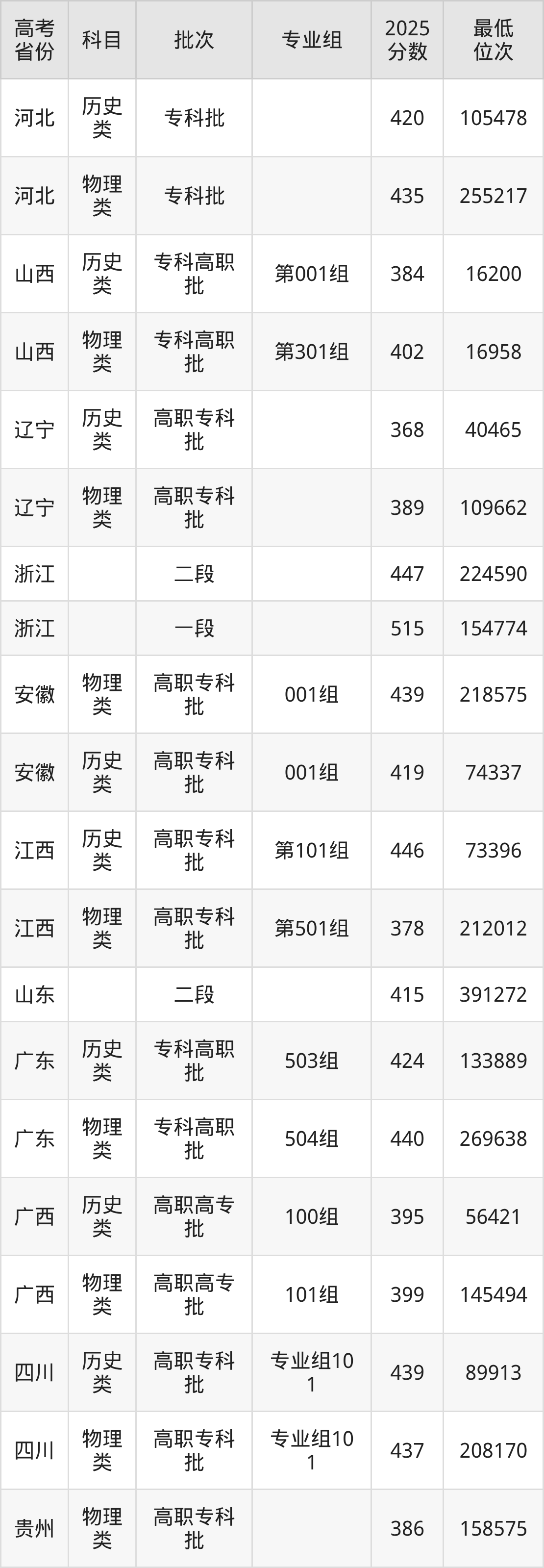 2026届高考生请重点参考下表,若你的高考成绩超过了江西生物科技职业学院往年在你省的最低录取分及位次,那么2026年被录取的概率也会比较高: