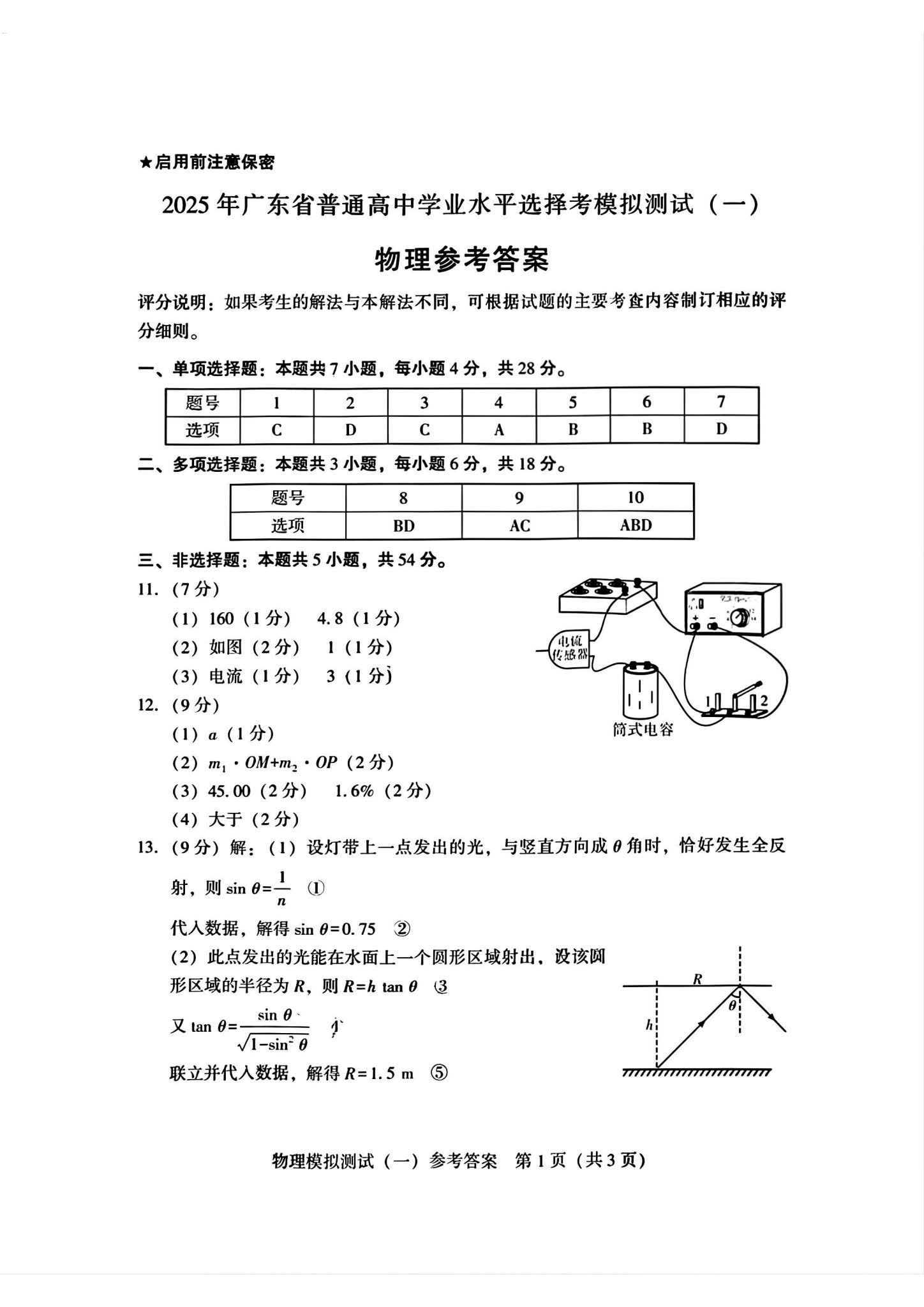 二、2025届广东省一模高三各科答案