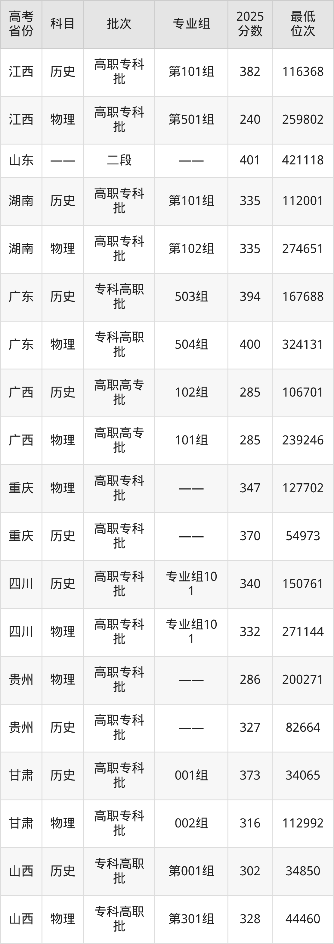 2026届高考生请重点参考下表,若你的高考成绩超过了营口职业技术学院往年在你省的最低录取分及位次,那么2026年被录取的概率也会比较高: