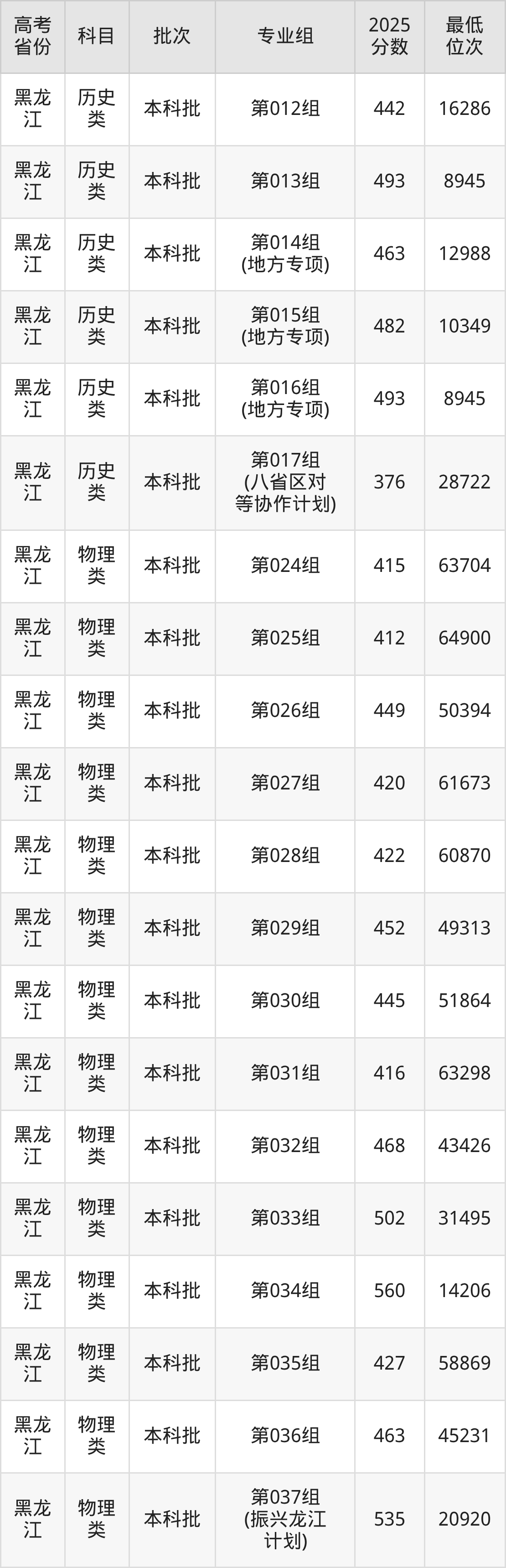 2026届高考生请重点参考下表,若你的高考成绩超过了佳木斯大学往年在你省的最低录取分及位次,那么2026年被录取的概率也会比较高: