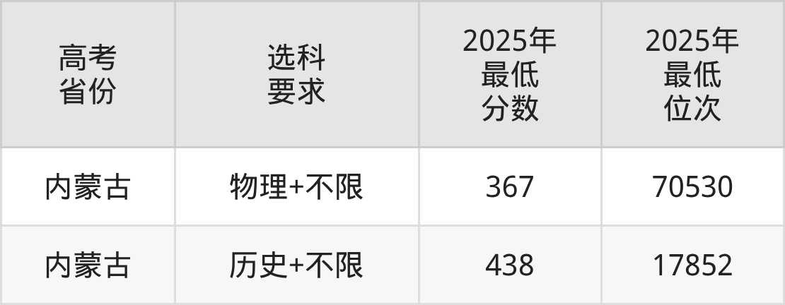 在2025年内蒙古高考物理类招生时,211收分最低的是东北林业大学第006组(中外合作),最低分是499分、位次是30054位。再看内蒙古警察学院,2025年在内蒙古物理类的最低录取分数线是367分,最低位次是70530位。