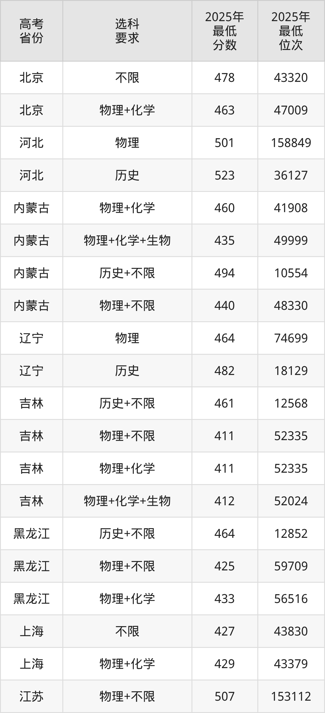 在2025年吉林高考物理类招生时,211收分最低的是延边大学第049组,最低分是387分、位次是58906位。再看吉林工商学院,2025年在吉林物理类的最低录取分数线是411分,最低位次是52335位。