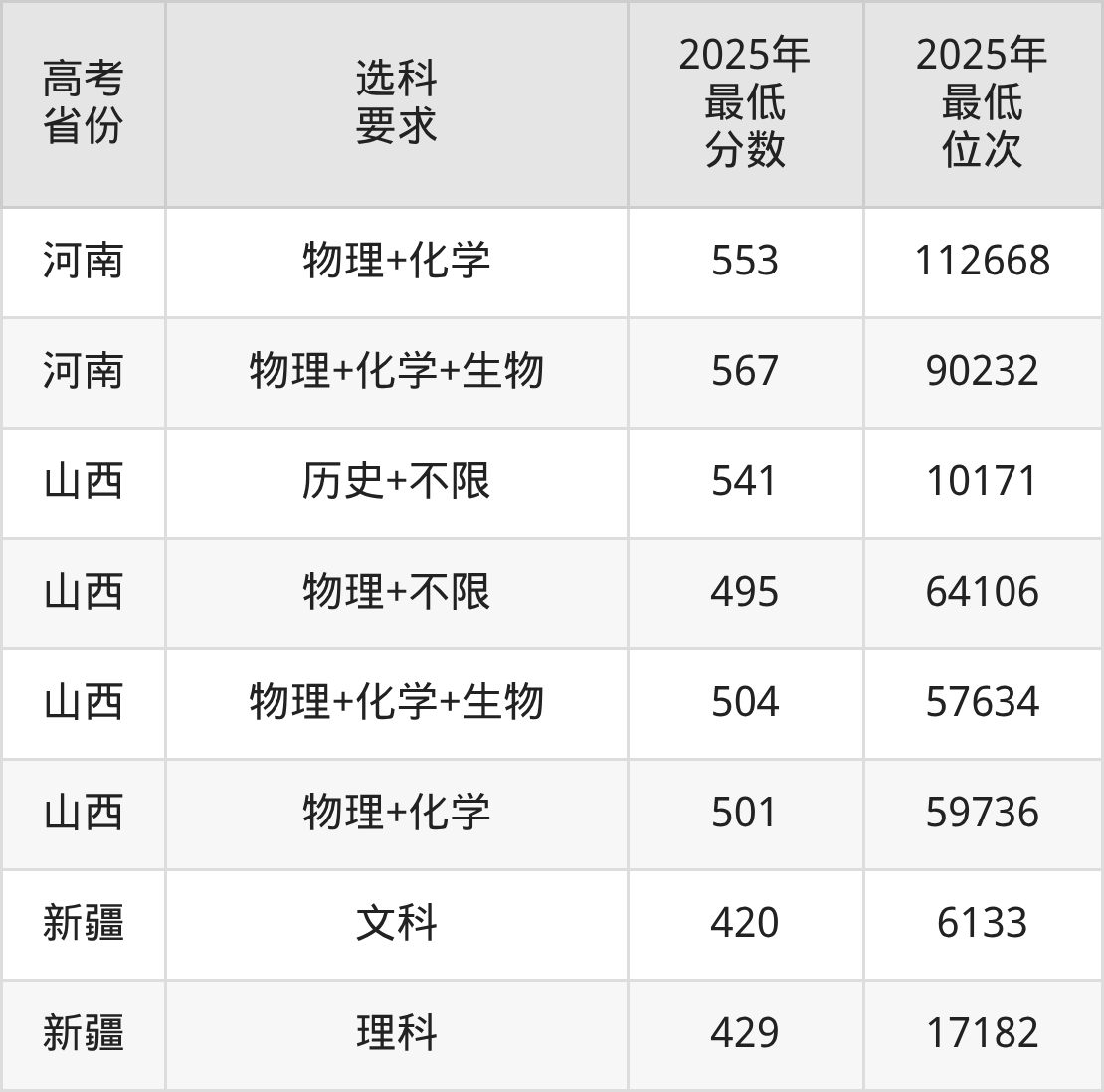 在2025年新疆高考理科招生时,211收分最低的是四川农业大学,最低分是421分、位次是18415位。再看延安大学,2025年在新疆理科的最低录取分数线是429分,最低位次是17182位。