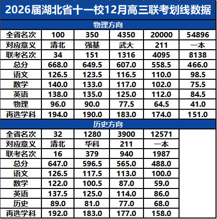 2026届湖北省十一校高三12月联考已于近日结束,本次联考是省内重点高中之间的一次重要阶段性检测,对考生定位自身水平、调整复习方向具有重要参考价值。此次联考一本线分别是物理类466分、历史类488分。