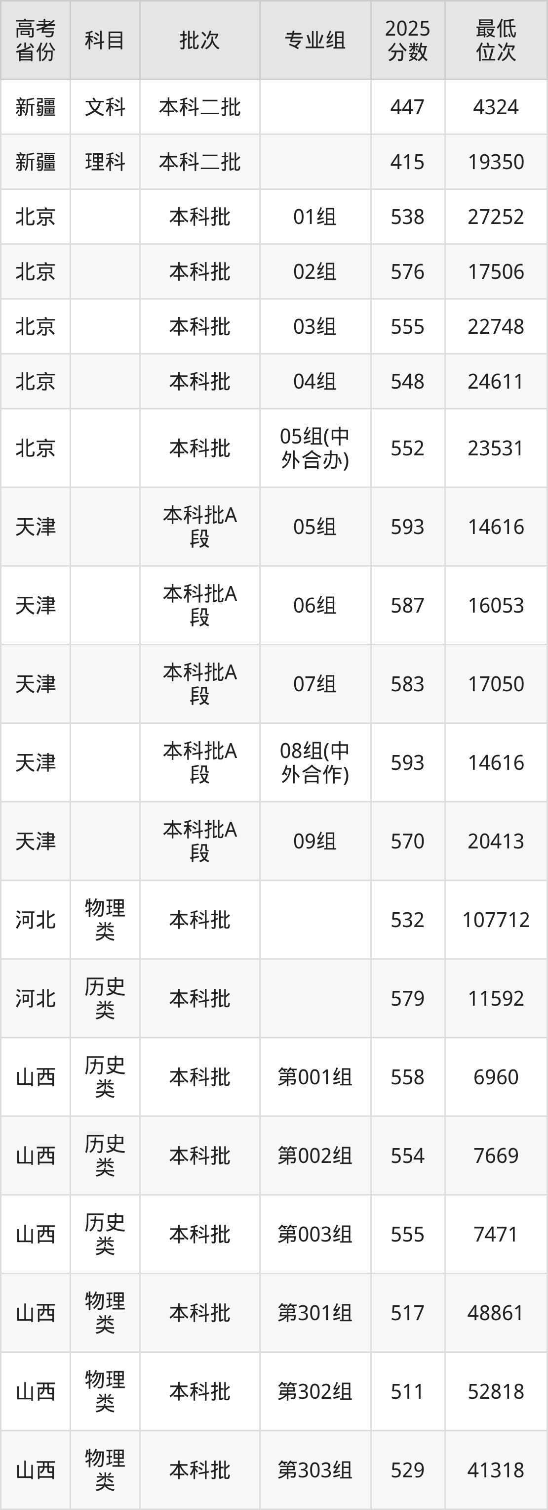 浙江传媒学院2025年在全国各省的最低分是415分,在浙江招生的最低分是544分、最低位次是119137位,在新疆文科招生的最低分是447分、最低位次是4324位,在新疆理科招生的最低分是415分、最低位次是19350位。