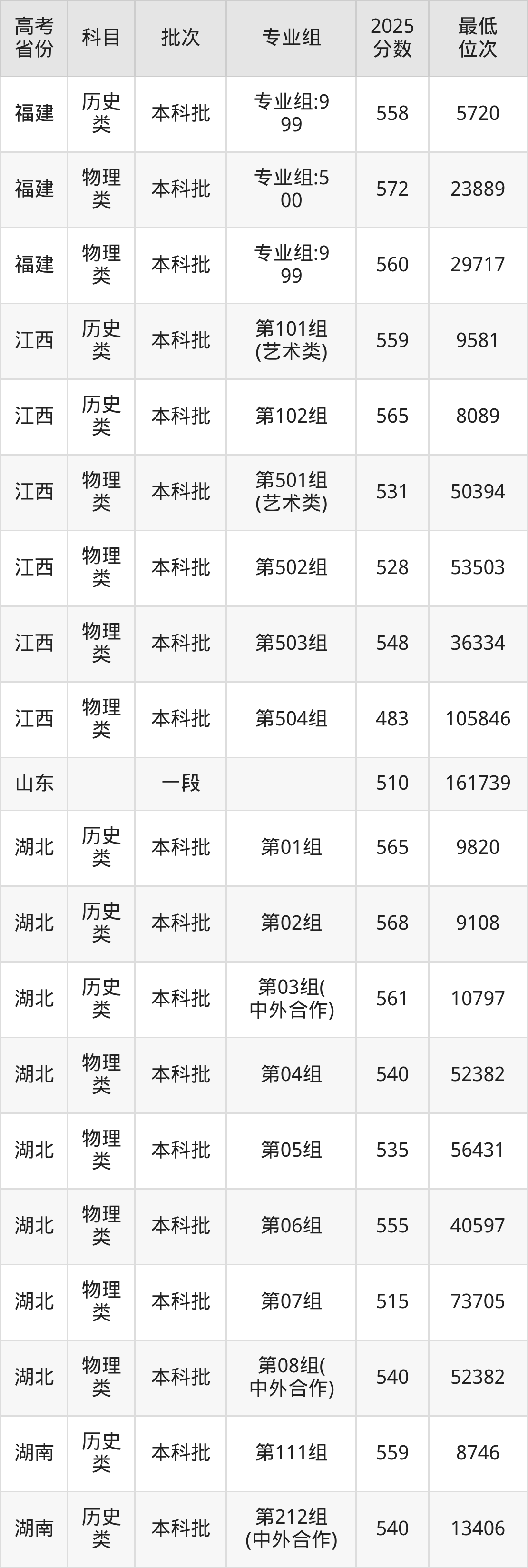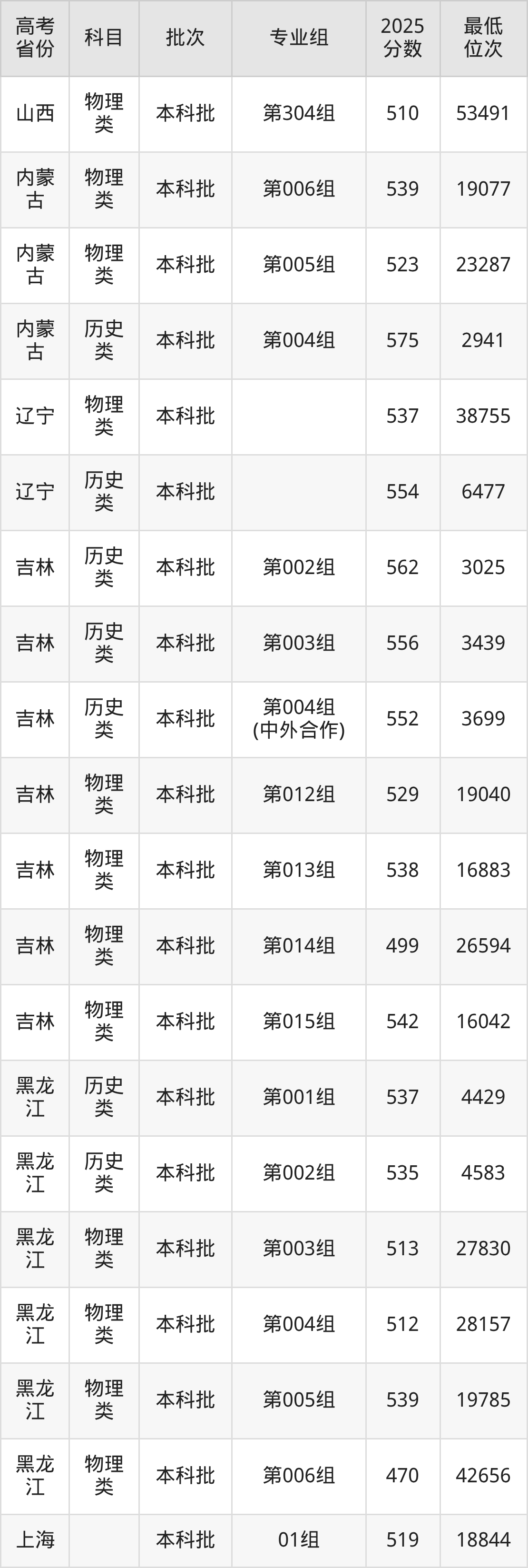 | 学校 代码 | 专业 代码 | 2025年 专业名称 | 收费 标准 |