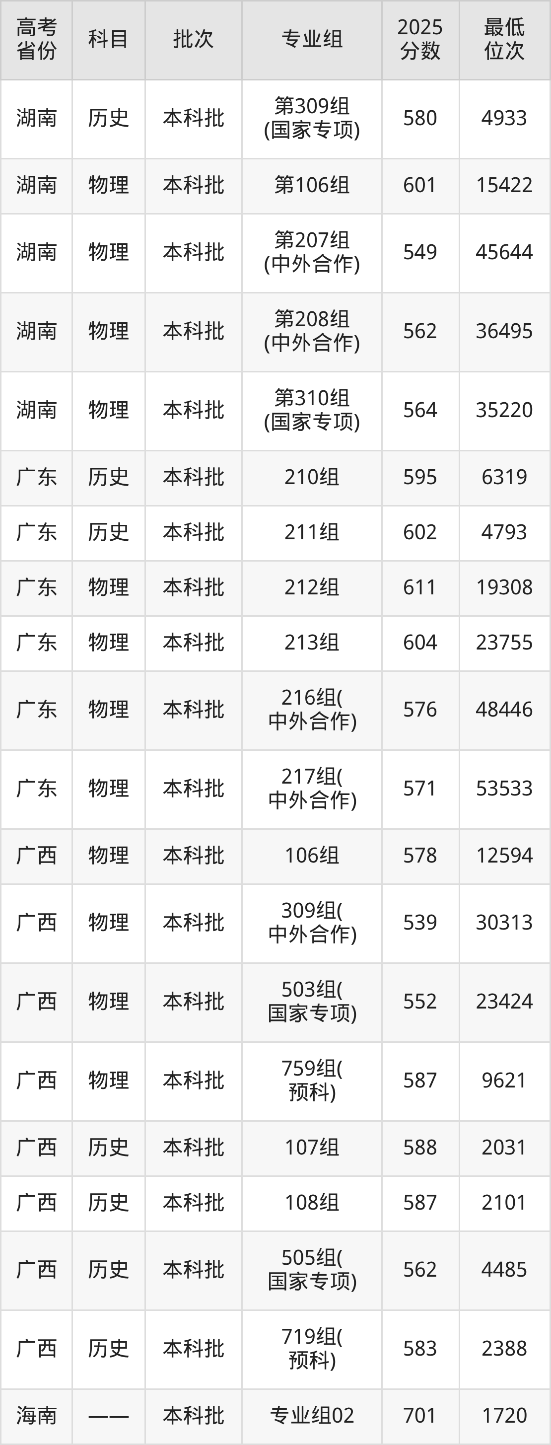 西南交通大学2025年在全国各省的最低分是402分,在四川历史类招生的最低分是602分、最低位次是4250位,在四川物理类招生的最低分是569分、最低位次是46766位,在新疆理科招生的最低分是553分、最低位次是3813位。