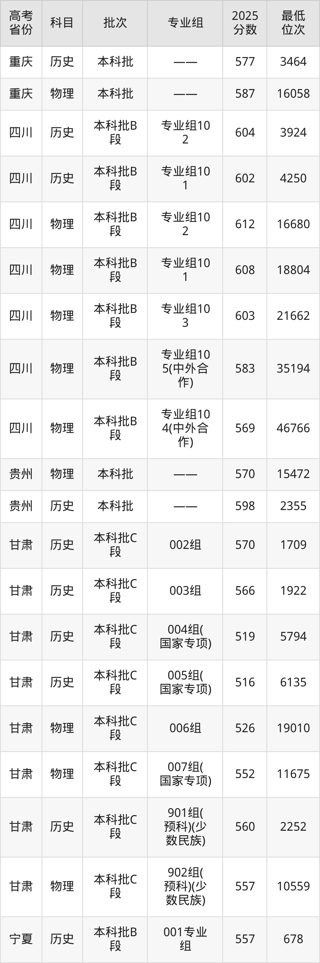 2026届高考生请重点参考下表,若你的高考成绩超过了西南交通大学往年在你省的最低录取分及位次,那么2026年被录取的概率也会比较高: