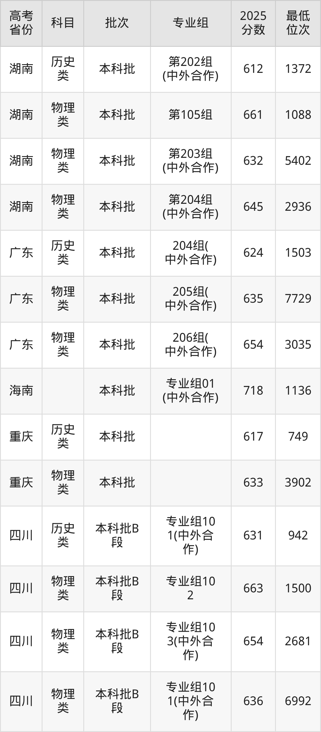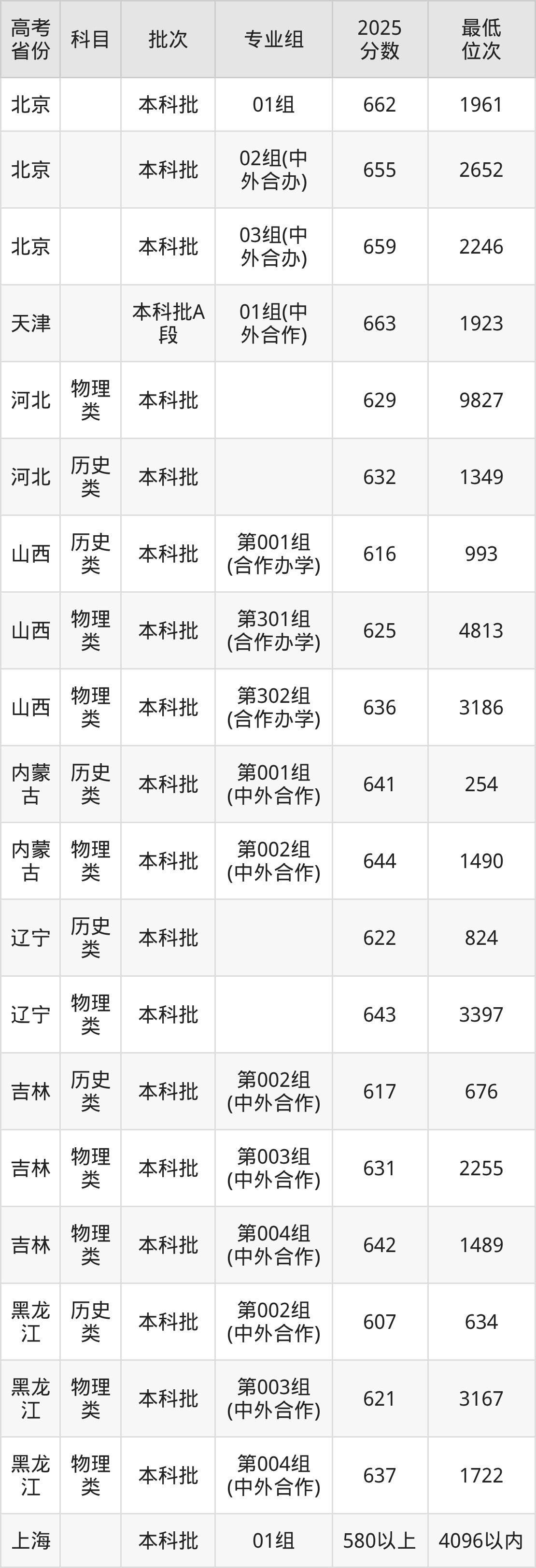 2026届高考生请重点参考下表,若你的高考成绩超过了中国人民大学(苏州校区)往年在你省的最低录取分及位次,那么2026年被录取的概率也会比较高: