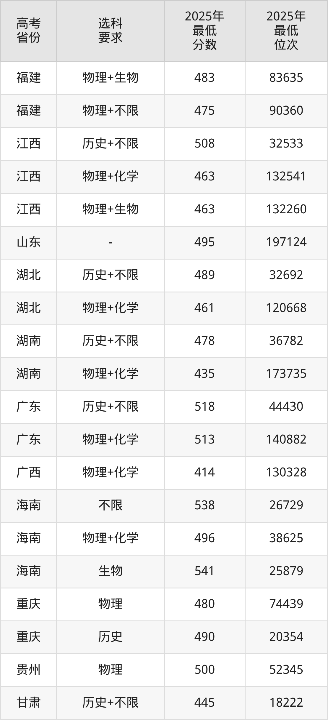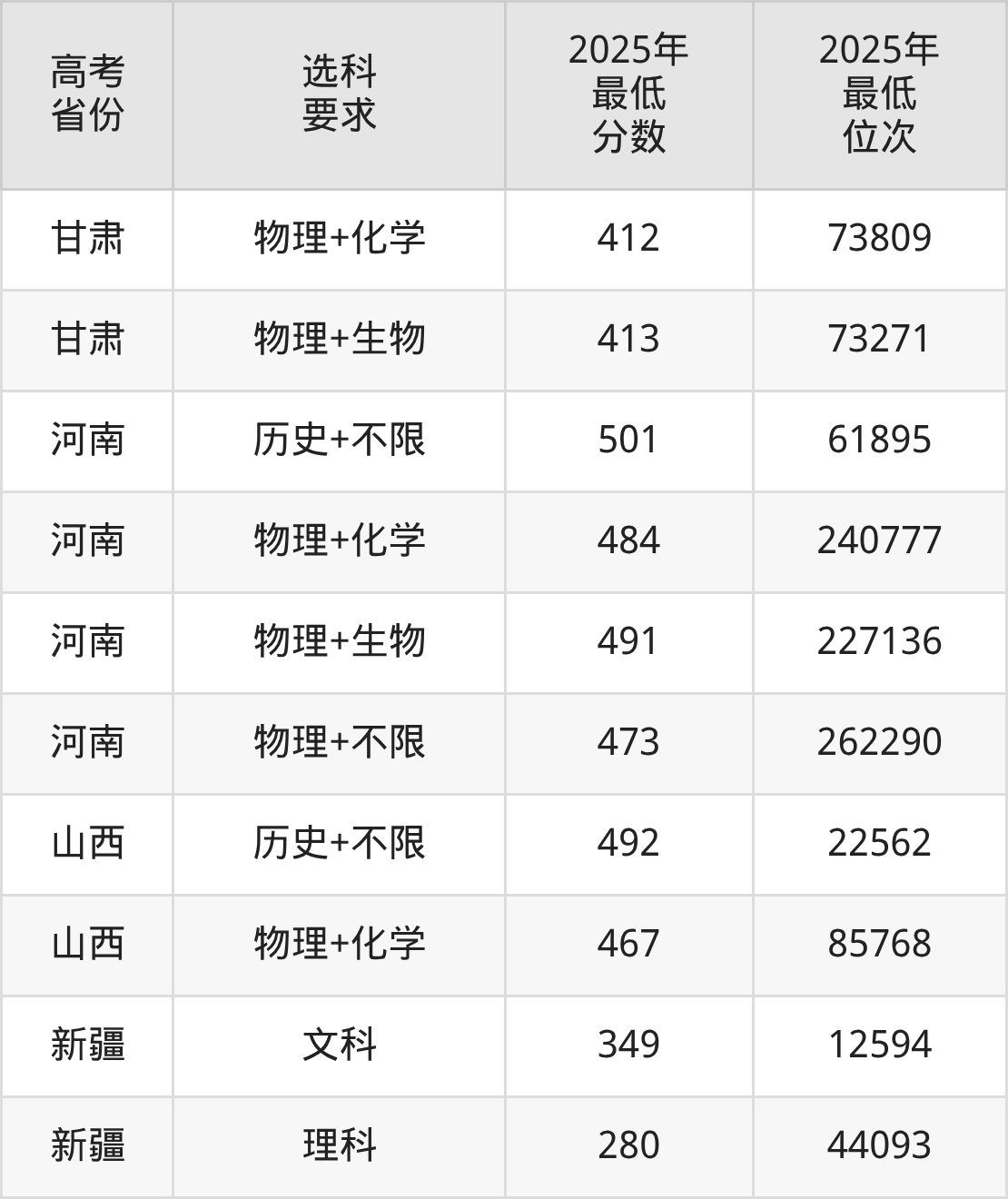 在2025年新疆高考理科招生时,公办本科收分最低的是兴安职业技术大学,最低分是148分、位次是52507位。再看昆明医科大学海源学院,2025年在新疆理科的最低录取分数线是280分,最低位次是44093位。