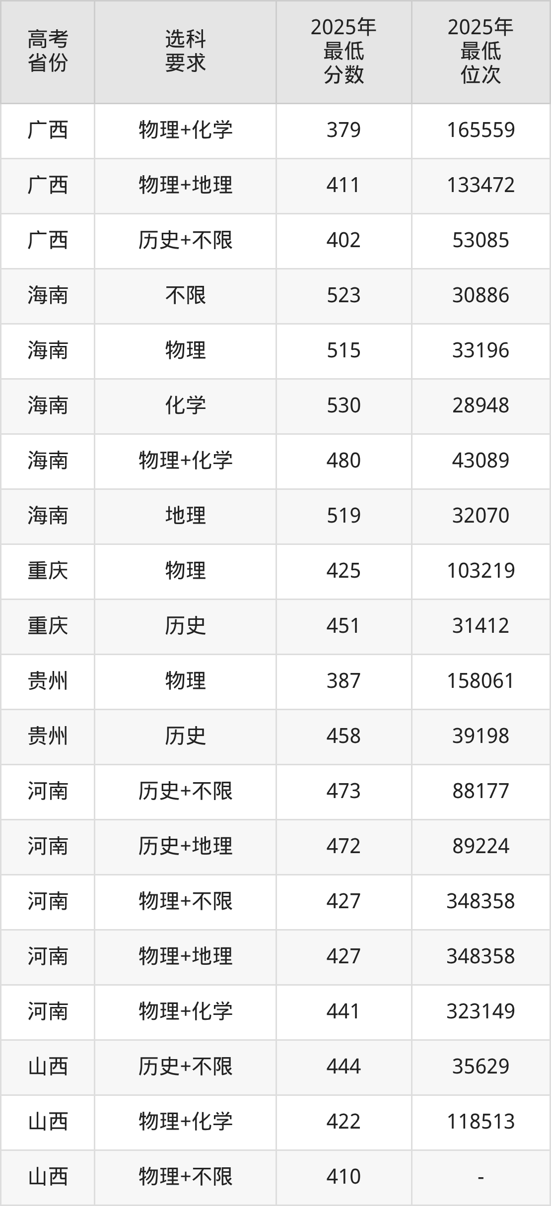 (3)自然地理与资源环境,最低分是483,录取位次是50724,学费是31980元一年。
