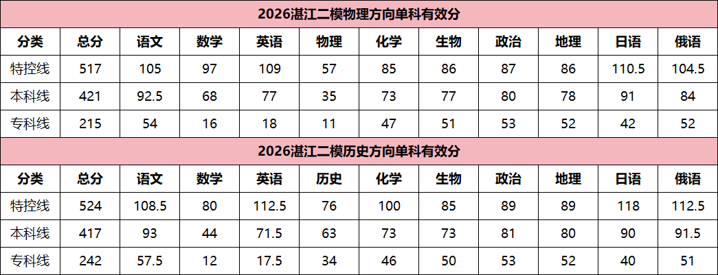 4. 湛江二模分数线