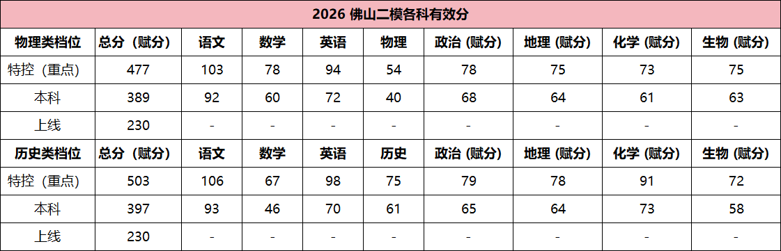 1. 佛山二模分数线