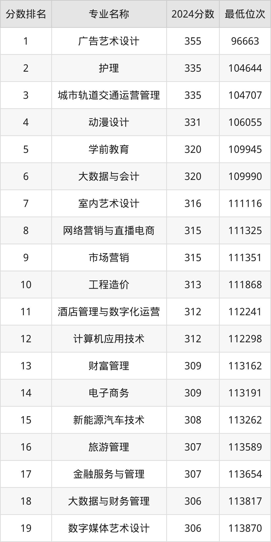 三、民办合肥财经职业学院各专业录取分数线及位次